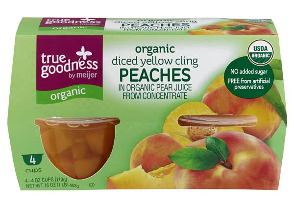 True Goodness Organic Diced Peaches in 100% Juice (4 oz, 4 ct)