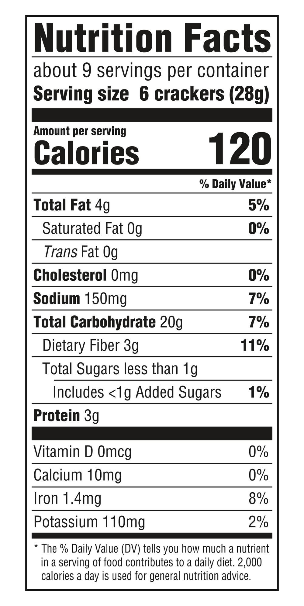 Triscuit Smoked Gouda Whole Grain Wheat Crackers are made simply with quality ingredients. Baked to perfection, these snack crackers use 100% whole grain wheat proudly grown in the USA and sunflower oil. The square snack crackers are made with their signature woven texture for a satisfying crunch. Nabisco Triscuit Smoked Gouda crackers are Non-GMO Project Verified, made without artificial colors or flavors and a good source of dietary fiber (see nutritional information for fat content) for delicious wholesome goodness. Enjoy the crunch of these delicious Gouda crackers on their own, or top with your favorite cheese, fruit, or flavorful spreads. Triscuit cracker snacks cover all of your snacking needs, whether you need lunch snacks for kids, snacks for adults or on the go snacks for traveling. Serve them at parties by creating a delicious charcuterie board featuring Triscuit crackers alongside your favorite cheese, meat, fruit, and vegetables for an easy appetizer. • Mondelez Global LLC, Easy Hanover, NJ, 07936 • Packaging: Reusable