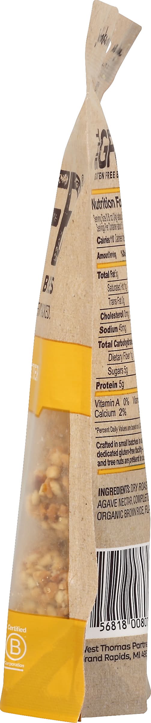 Ingredients: Dry Roasted Virginia Peanuts, Organic Brown Rice, Syrup, Organic Agave Nectar, Complete Protein Blend (Organic Brown Rice Protein, Pea Protein), Organic Brown Rice, Flaxseed, Natural Vanilla Flavor, Sea Salt Contains: Peanuts, Tree Nuts