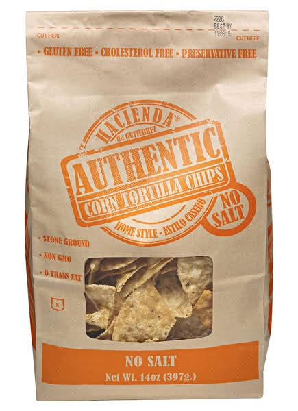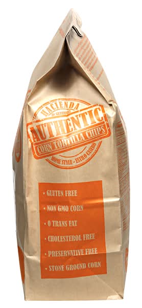 Hacienda Authentic Corn Tortilla Chips are artisan made, offering a natural corn flavor. These chips are free of added salt and sodium, making them a suitable option for those seeking a healthier snack. Enjoy the crunchy texture whether dipping or eating straight from the bag.