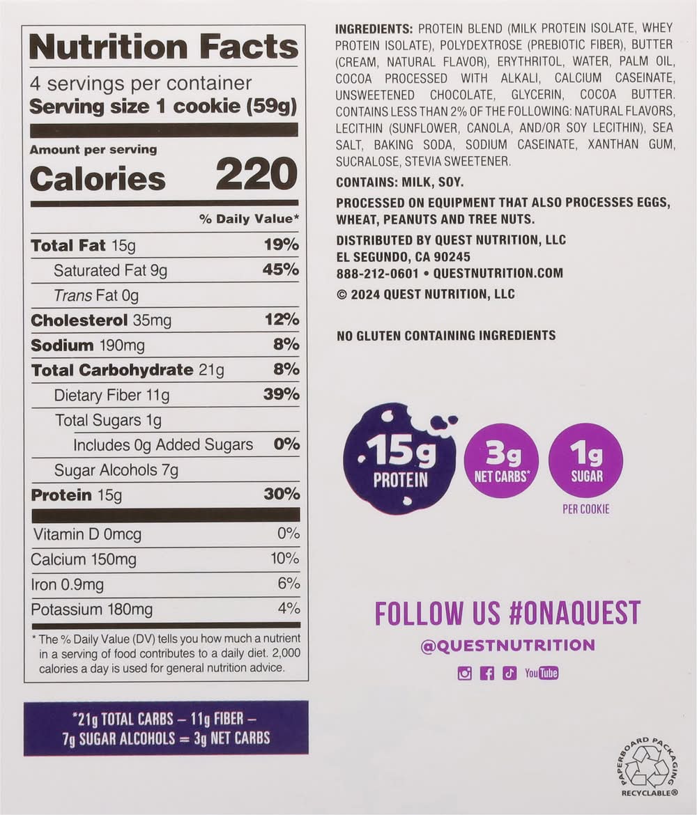 Protein Cookie, Double Chocolate Chip, Soft & Chewy Quest Nutrition, LLC, El Segundo, CA , 90245