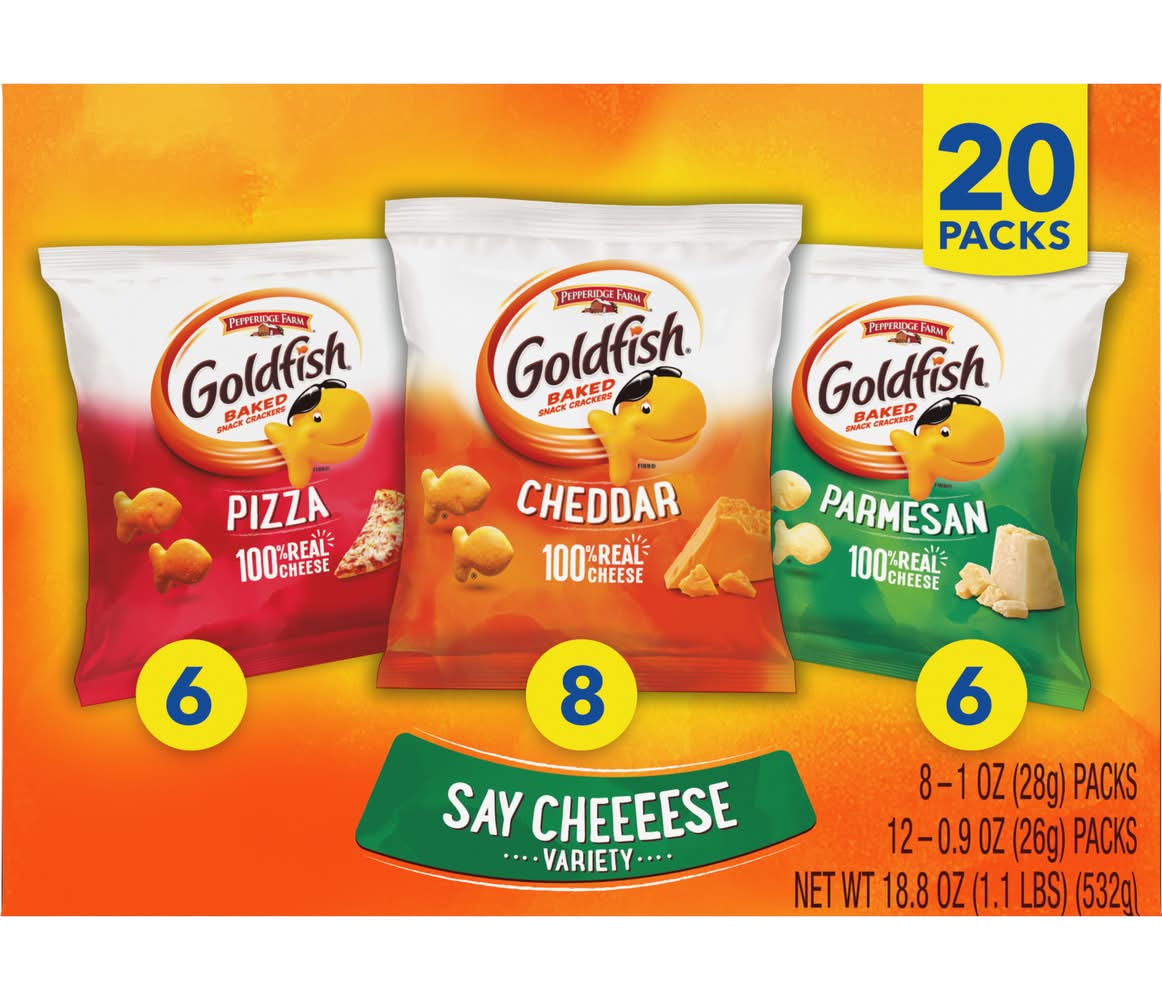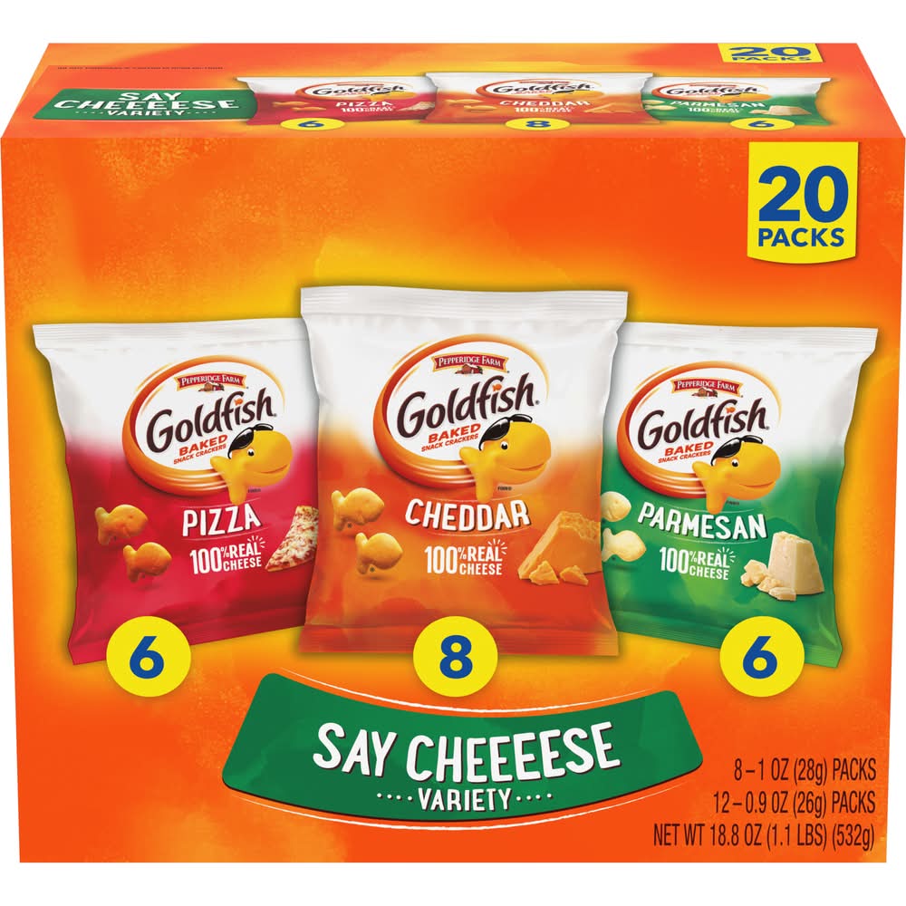 Pepperidge Farm Goldfish Cheese Variety Baked Snack Crackers, Assorted (1.18 oz, 20 ct)