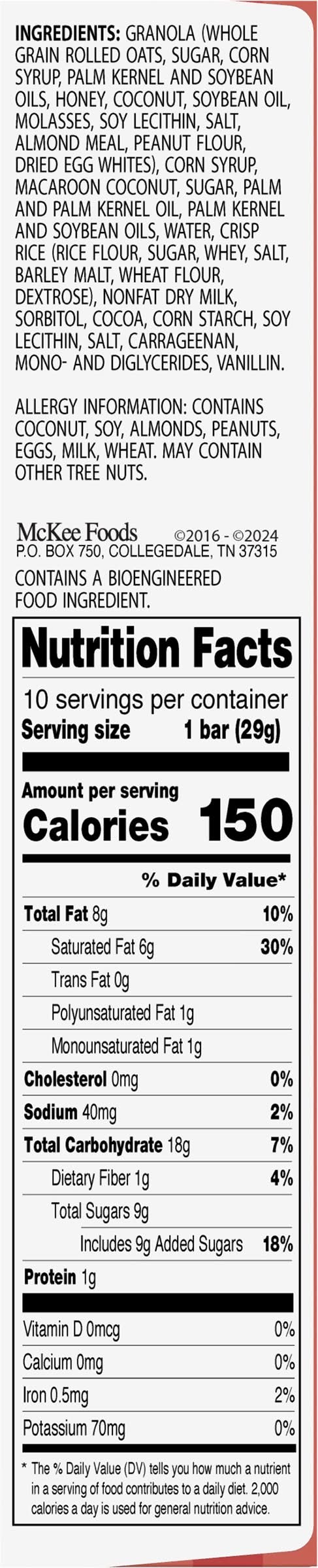 Granola Bars, Chewy, Fudge Dipped Coconut • Mckee Foods, PO Box 750,Collegedale,TN,37315 • Packaging: Reusable
