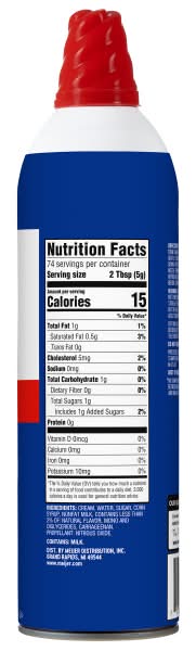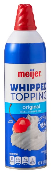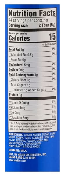 Meijer Whipped Topping is crafted using real cream, ideal for enriching a variety of treats such as hot chocolate, desserts, lattes, sundaes, and baked goods. Packaged in an aerosol can, it allows for convenient and precise application, seamlessly integrating a creamy texture into various culinary creations.