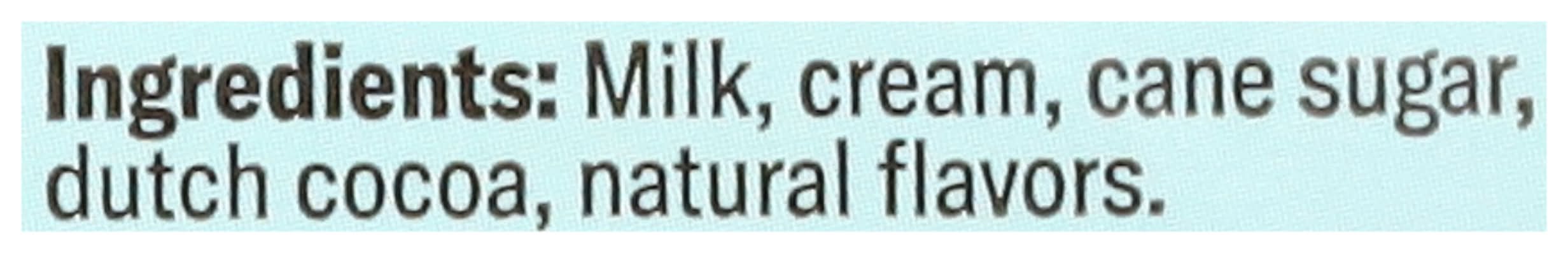 Ingredients: Milk, Cream, Cane Sugar, Dutch Cocoa, Natural Flavors Contains: Milk