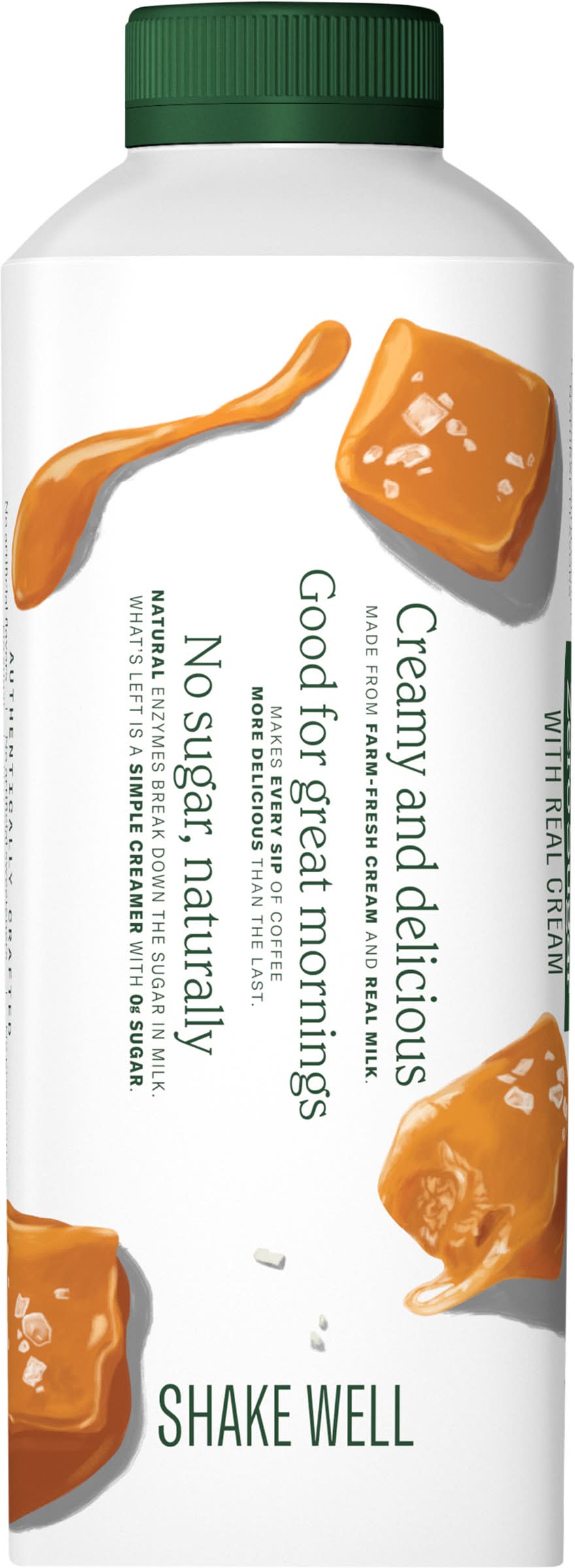 We took the sugar out of the milk to craft this one-of-a kind dairy creamer using natural enzymes that “eat” the sugars found in milk. That means our delicious dairy creamer made with simple ingredients has 0g sugar, naturally. A creamy and delicious, full-flavor coffee creamer. Makes every sip of coffee sweeter than the last with 0g total sugar. • Flavor: Salted caramel • Packaging: Reusable
