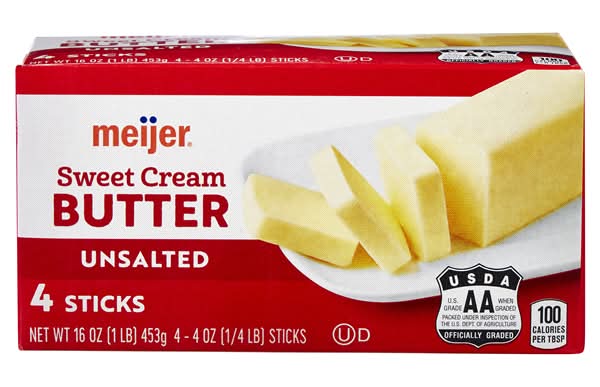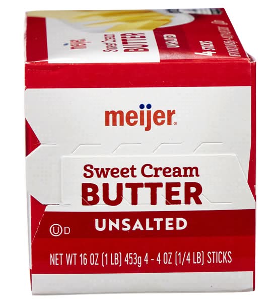 Meijer Unsalted Butter Sticks are ideal for spreading over bread and enhancing a variety of recipes. With a smooth, creamy flavor, these butter sticks are unsalted and suitable for culinary applications including macaroni and cheese and grilled cheese sandwiches. They are also an excellent choice for those looking to explore their culinary creativity. Pack size: 4