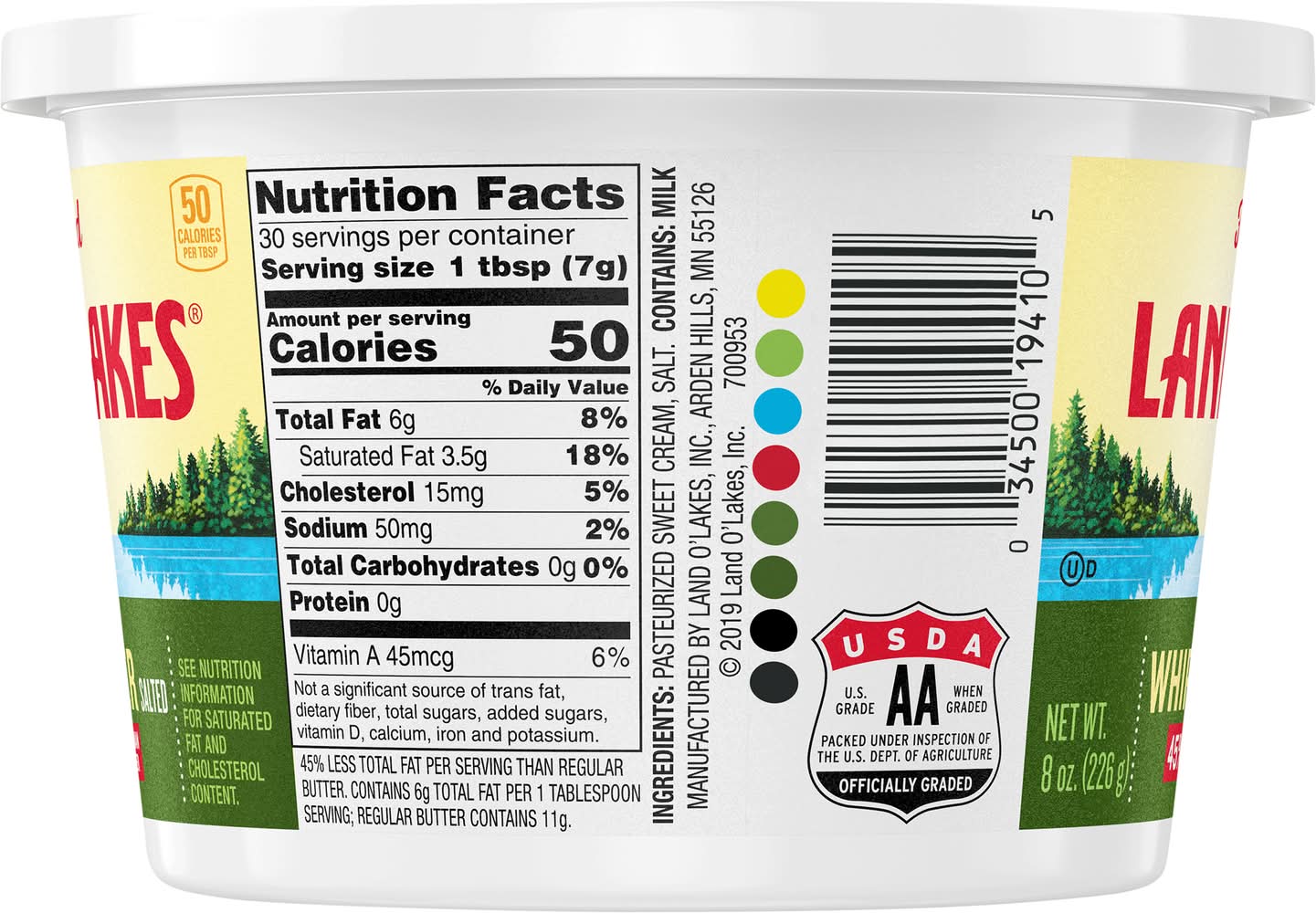 It Is Made With Quality Ingredients And Gives You The Taste You Love, Spreadable Right Out Of The Fridge. Spread It Onto Warm, Fluffy Pancakes Or Spoon It Into A Hot Skillet And Give Your Steak A Sizzling Golden Crust. No Matter How You Use It, It Will Take Your Cooking To A Whole New Level. Contains One 8 Oz Tub In Total. Land o'lakes, inc., Arden Hills,MN,55126