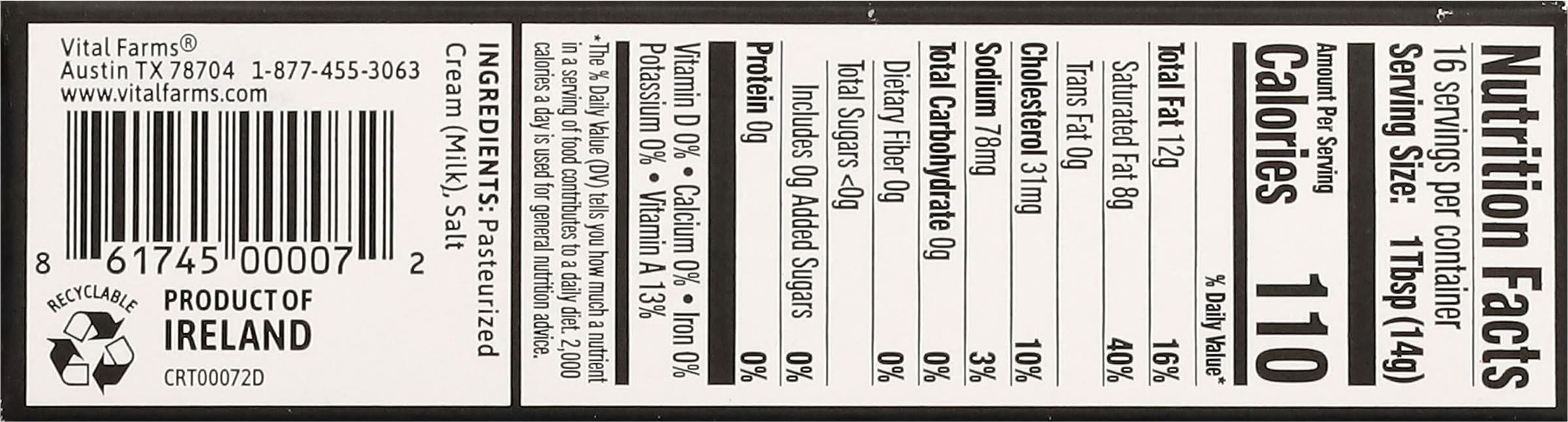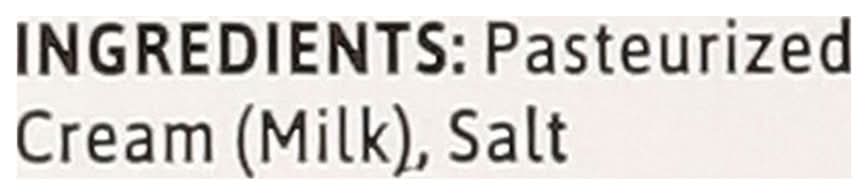 Ingredients: Pasteurized Cream (Milk), Salt Contains: Milk