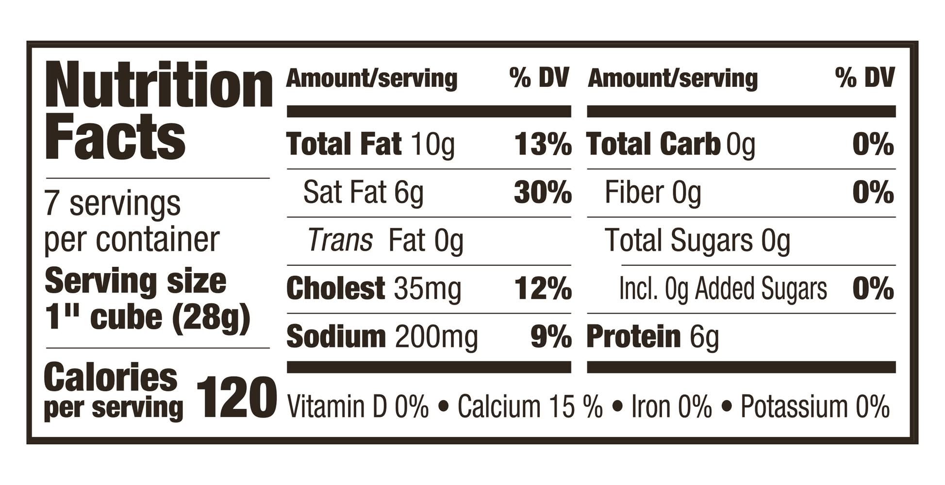 Ingredients: Pasteurized Milk, Salt, Cheese Cultures, Microbial Rennet Contains: Milk