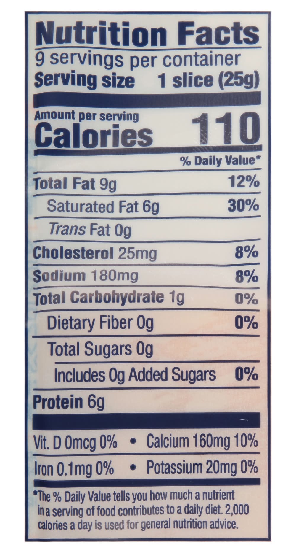Ingredients: Cultured Milk, Salt, Enzymes, Annatto (color). Contains: Milk