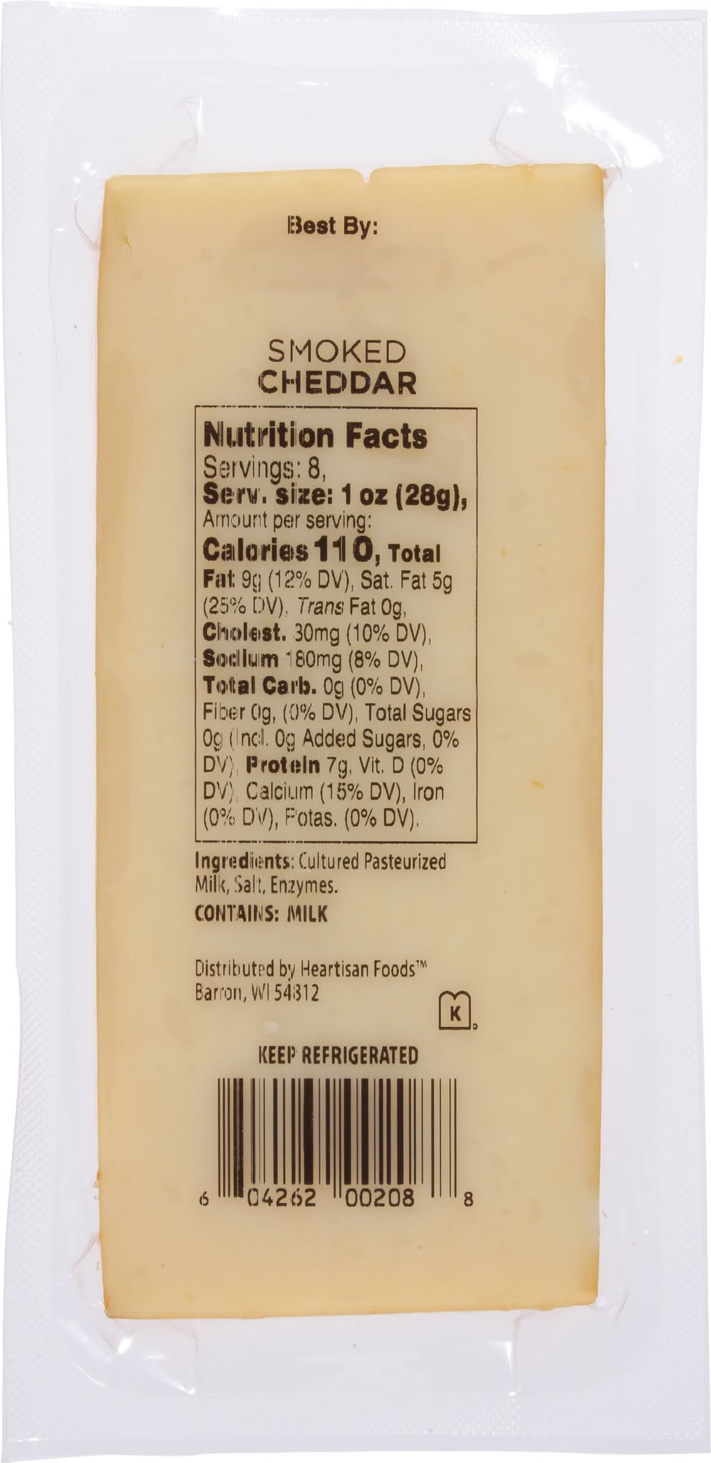 Smoked Cheddar is naturally smoked using a blend of apple and hardwood, providing a distinctive flavor. This cheddar cheese is crafted in Wisconsin. Red Apple Cheese, LLC, Watertown, Ct, 06795