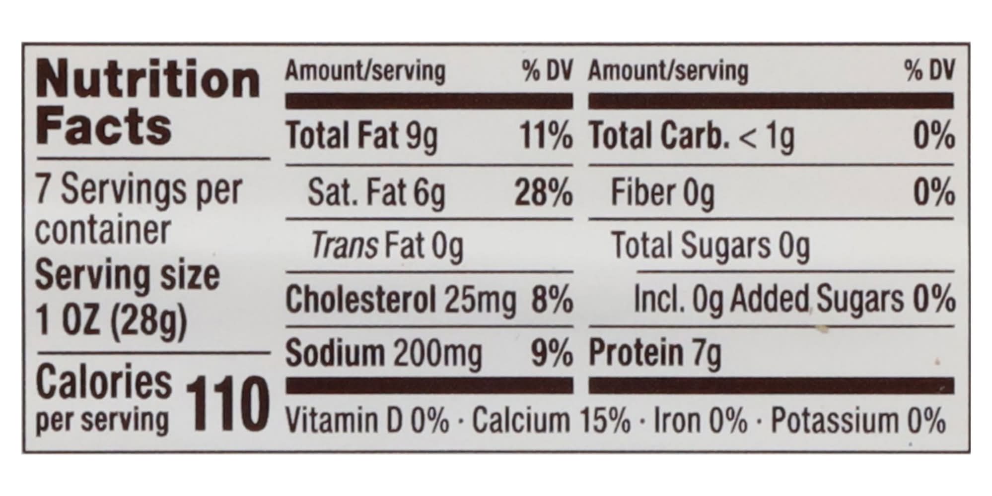 Cheese, Cheddar, Artisan Series Number of servings: 7