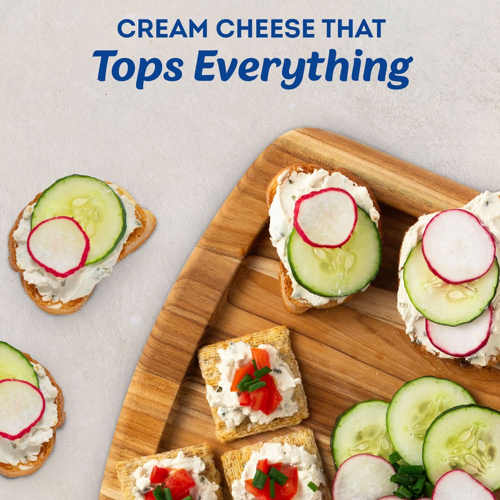 Dive into immersive pleasure with Philadelphia Chive and Onion Cream Cheese Spread. Made with fresh milk, real cream, chives and onions for an extra creamy, multi-dimensional taste you can add to any meal. At Philly, we leave out the artificial preservatives, flavors and dyes to ensure a rich, quality flavor. Our chive and onion cream cheese spread is easy to spread, making it the perfect choice for adding to your morning bagel, mixing in a dip or topping crackers for an afternoon snack. Keep our 15.5 ounce resealable container of cream cheese spread refrigerated. With Philadelphia Cream Cheese Spread, enjoy a rich, creamy experience you don't just taste, you feel. • Number of servings: 14 • Kraft Heinz Foods, Chicago, IL, 60601, Ph: 800-634-1984 • Packaging: Reusable
