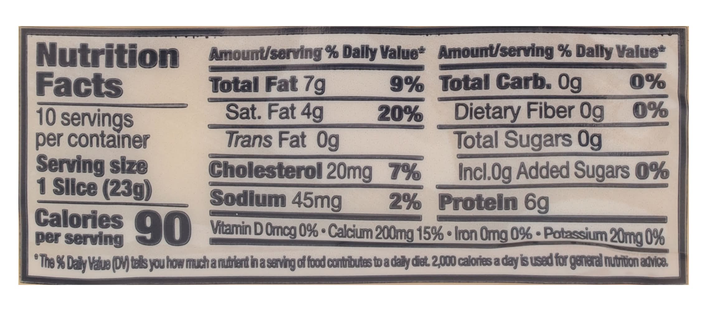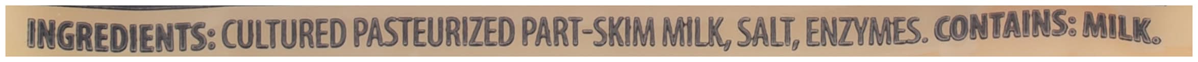 Ingredients: Pasteurized Milk, Cheese Cultures, Salt, Enzymes Contains: Milk