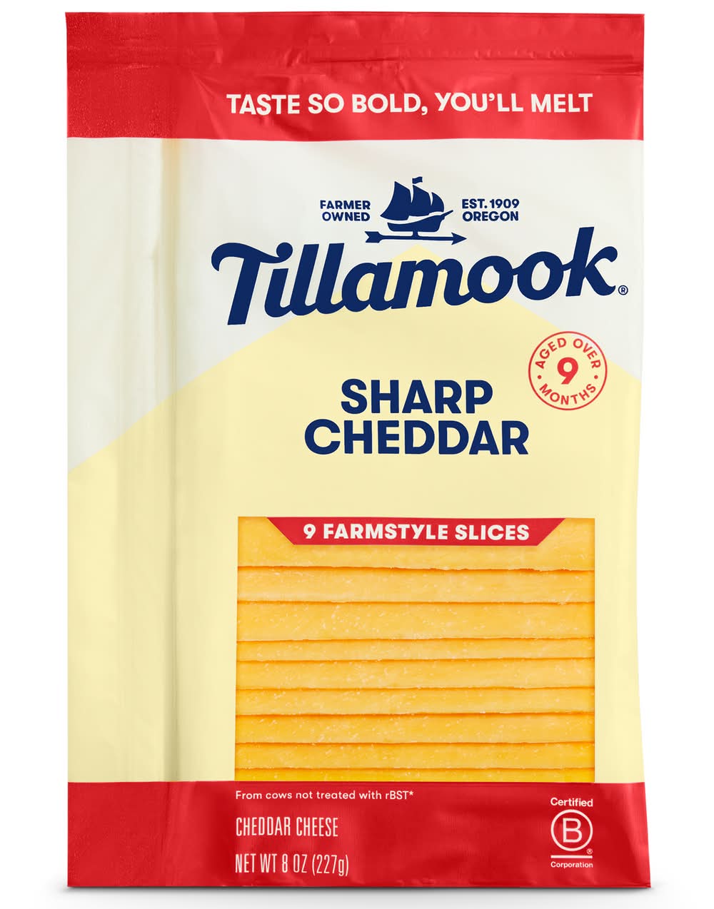 Tillamook Farmstyle Slices Sharp Cheddar Cheese (8 oz, 9 ct)
