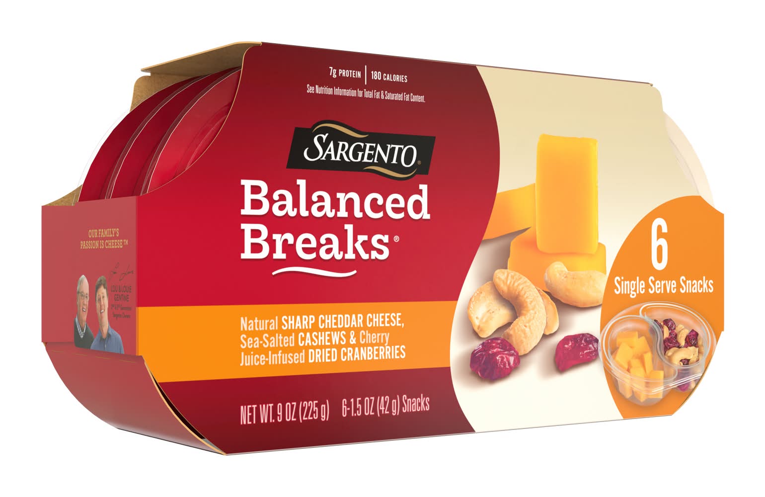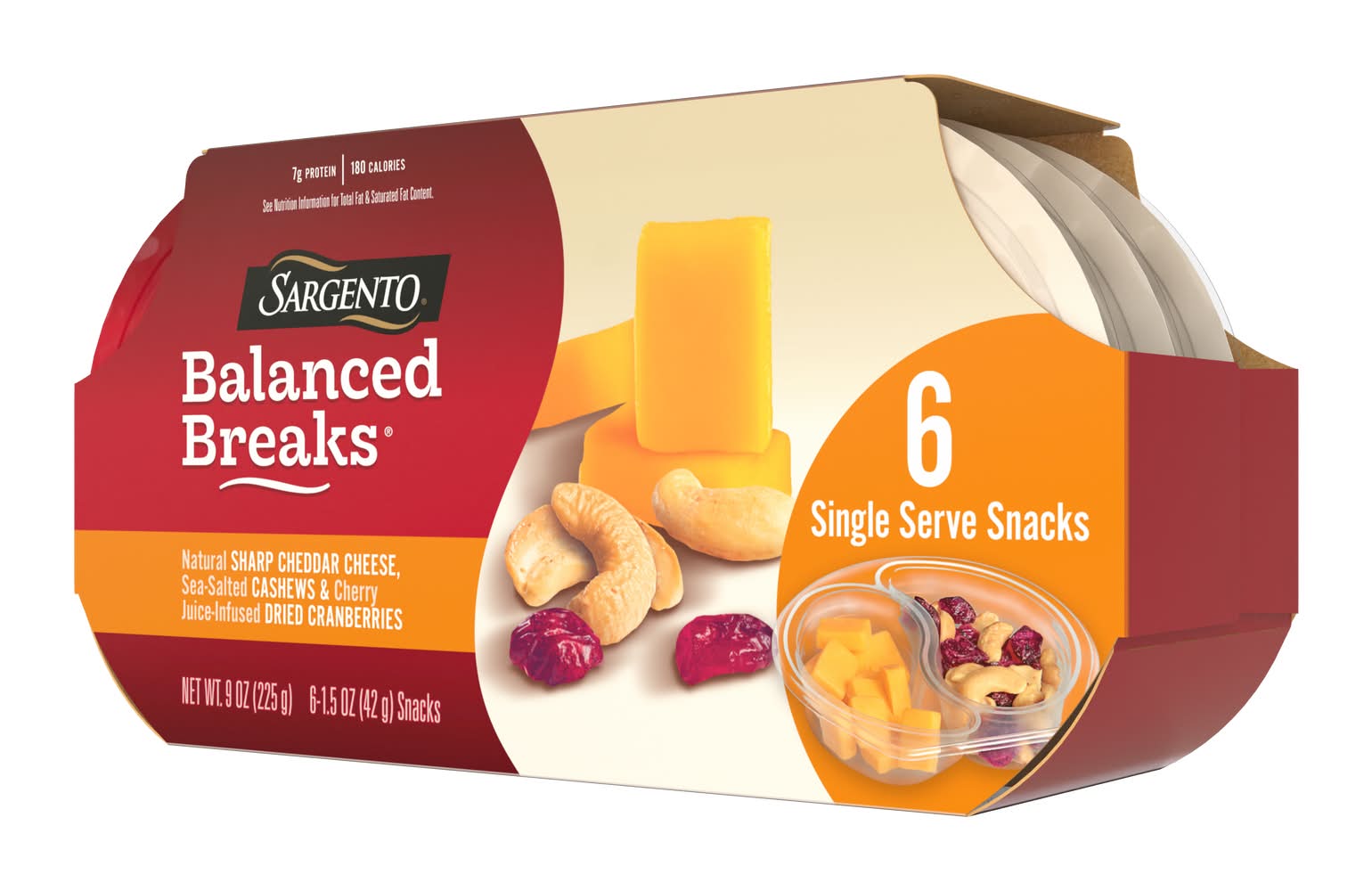 We bring some of your favorite flavors together in a Balanced Breaks® snack kit featuring bold Sharp Cheddar, buttery cashews and tart cherry juice-infused cranberries. The convenient individual-sized snack trays come in a 6-count package for easy take-along snacks for school, work or anywhere. It’s a delicious, wholesome snack that keeps your hunger at bay.