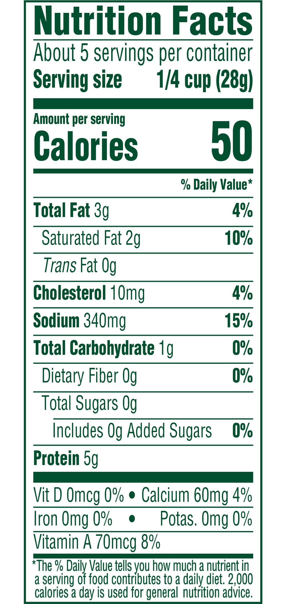 Ingredients: REDUCED FAT FETA CHEESE (PASTEURIZED PART-SKIM MILK, CHEESE CULTURE, SALT, ENZYMES, VITAMIN A PALMITATE), POWDERED CELLULOSE TO PREVENT CAKING, NATAMYCIN (A NATURAL MOLD INHIBITOR). Contains: CONTAINS: MILK.
