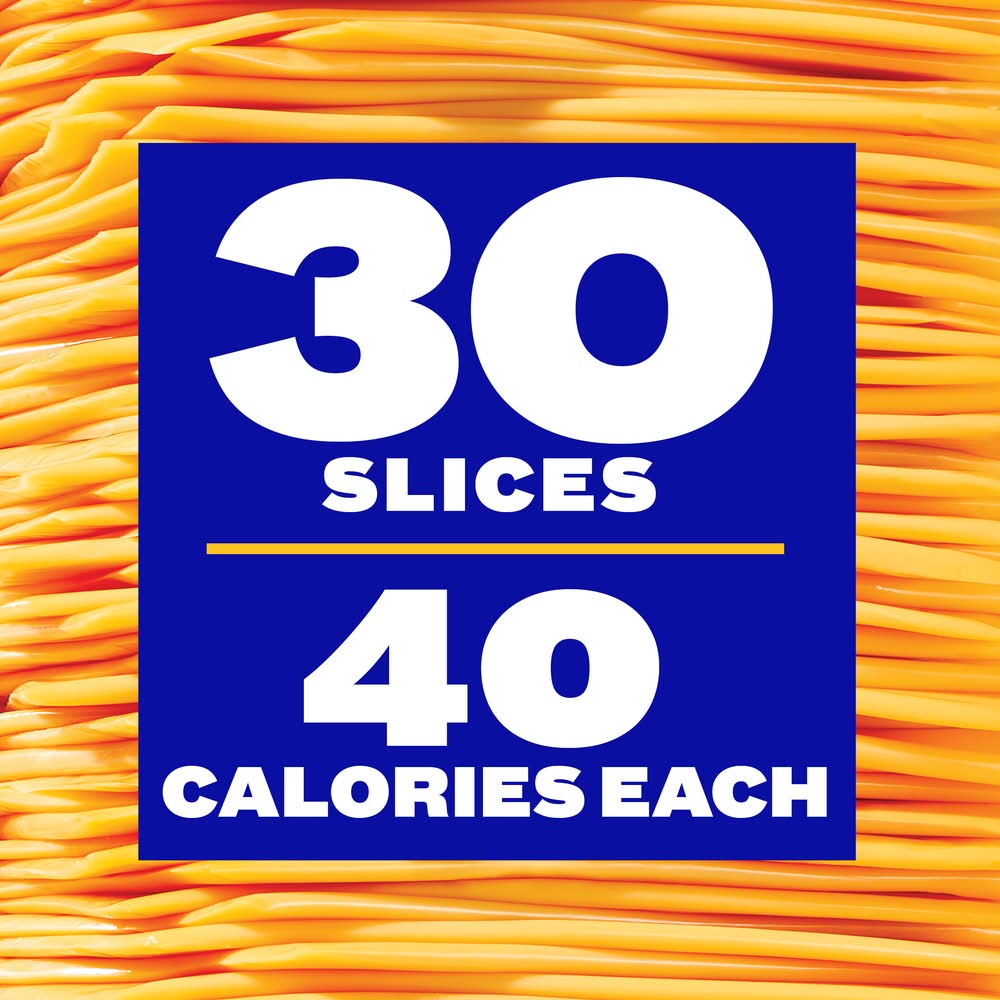 Offer a pasteurized prepared cheese product with no artificial preservatives, flavors, or dyes. Each serving of two slices contains 80 calories. These slices are an excellent source of calcium. Consumers should consult the nutrition information for details on saturated fat and sodium content.