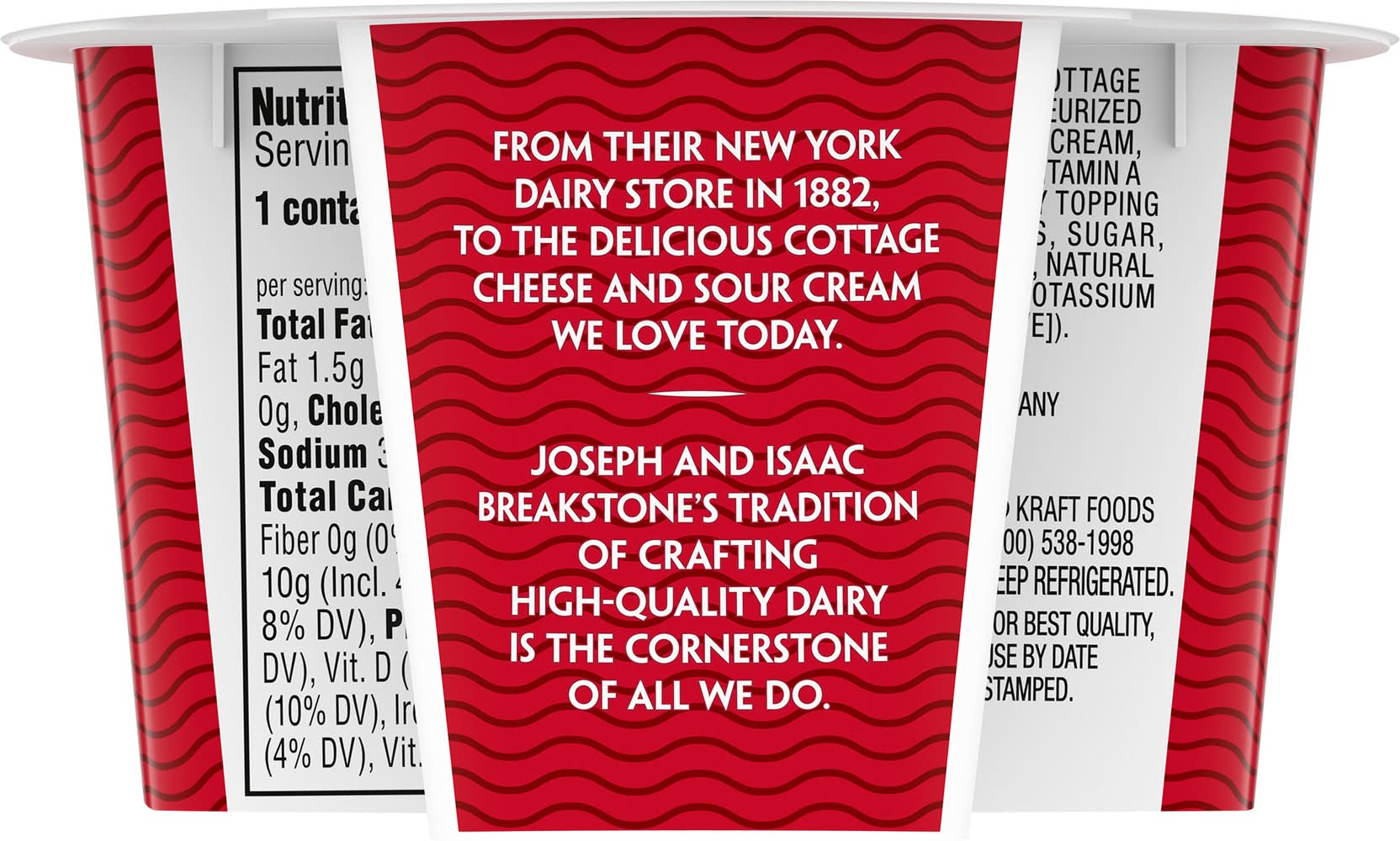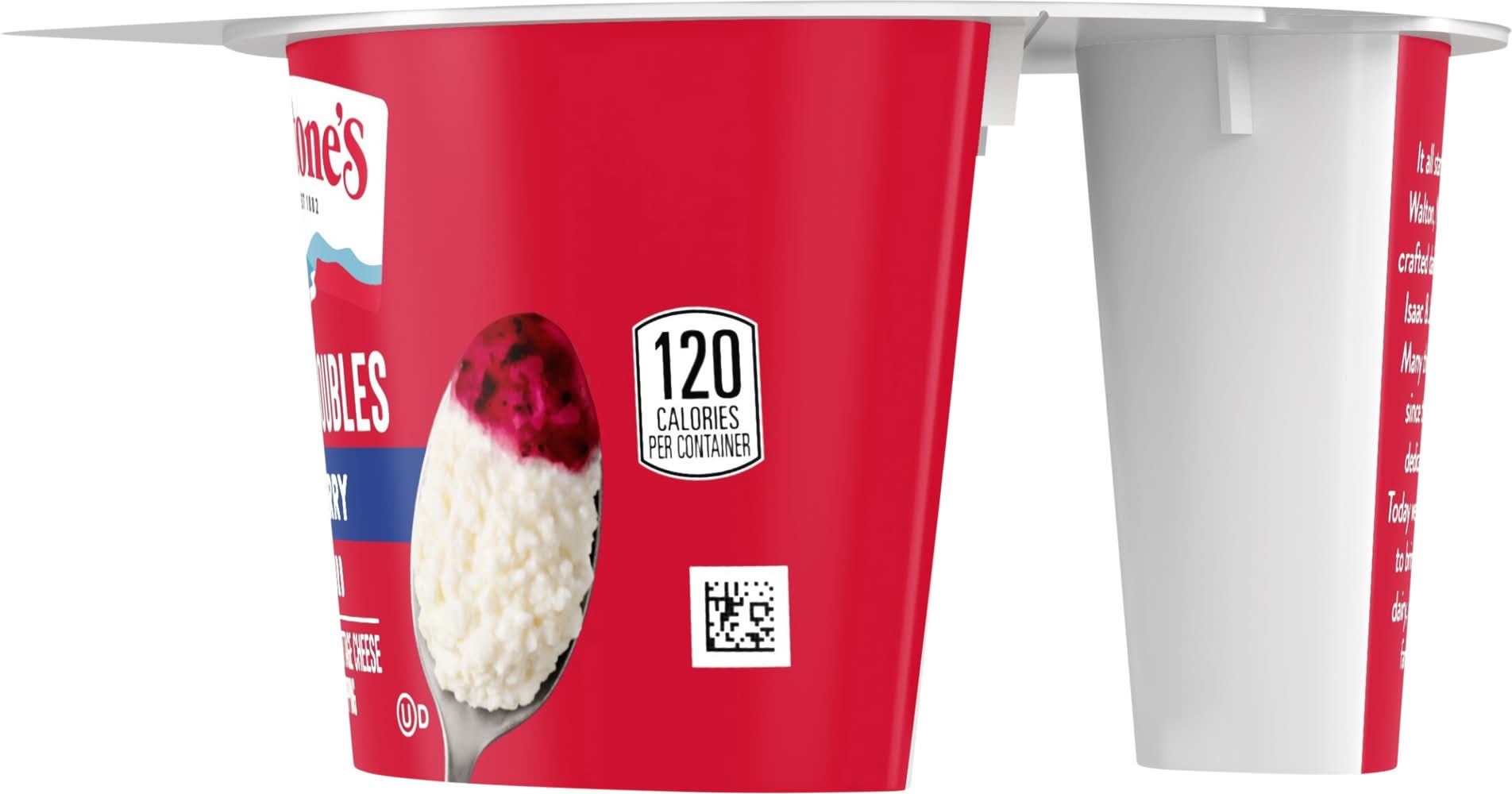 Ingredients: Lowfat Cottage Cheese (Cultured Pasteurized Skim Milk and Cream, Tapioca Starch, Salt, Vitamin A Palmitate), Blueberry Topping (Water, Blueberries, Sugar, Modified Corn Starch, Natural Flavor, Citric Acid, Potassium Sorbate [Preservative]) Contains: Milk