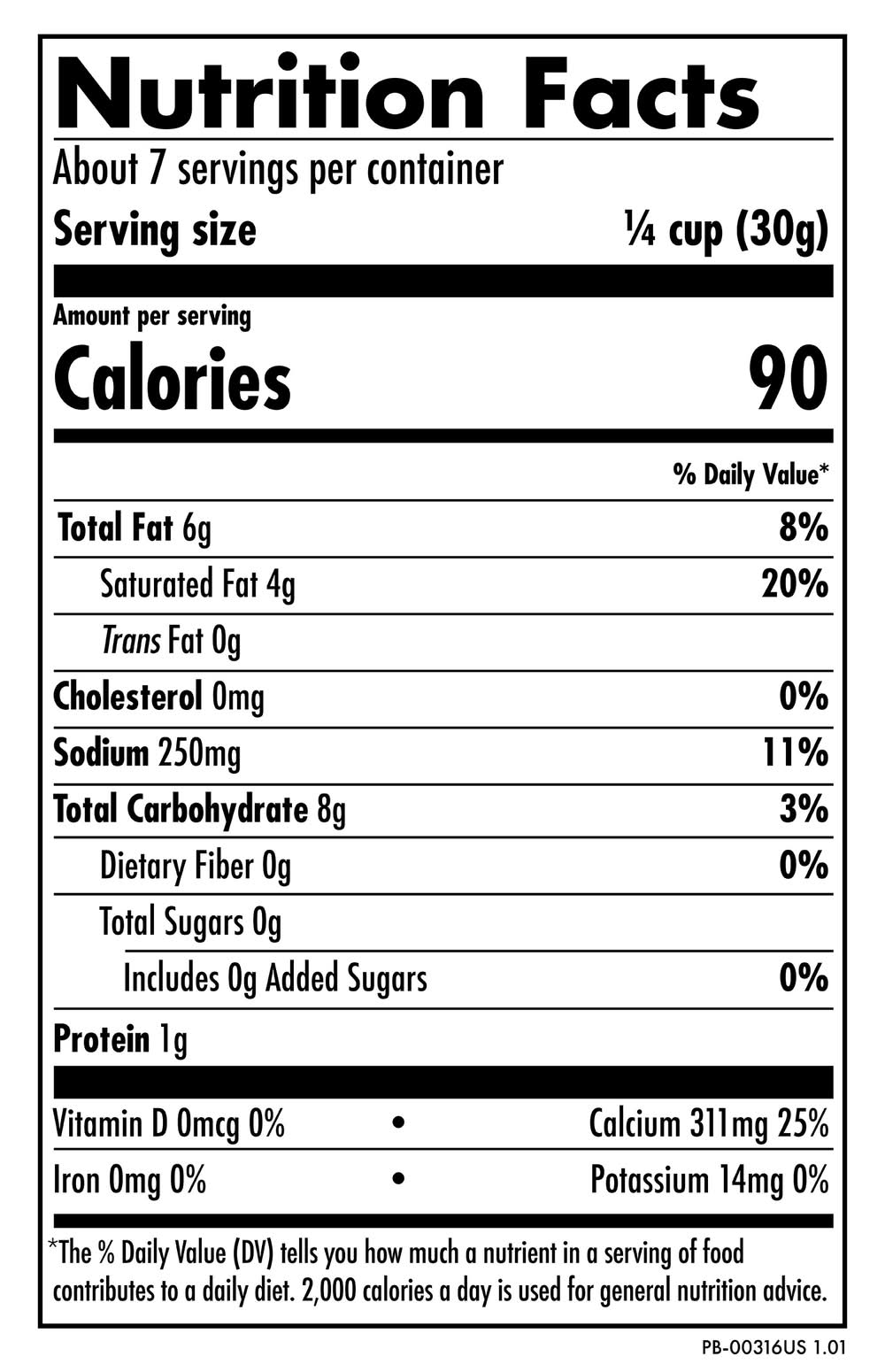Ingredients: Filtered Water, Tapioca Flour, Coconut Oil, Expeller Pressed Safflower Oil, Chickpea Protein, Natural Flavors, Salt, Tricalcium Phosphate, Lactic Acid, Konjac Flour, Xanthan Gum, Fruit and/or Vegetable Juice Color, Yeast Extract. Contains: Tree Nuts