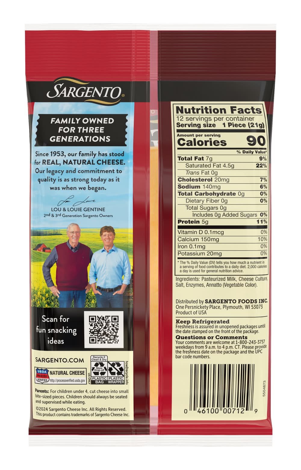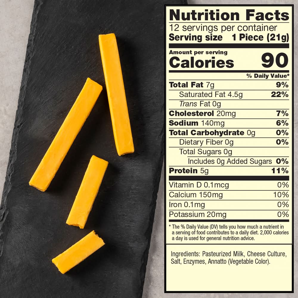 Sargento Natural Cheese Snack Sticks are richly flavorful thanks to the combination of these two smooth cheese flavors. This tangy cheese is a natural source of calcium with 5 grams of protein per serving, these snack sticks make a convenient on-the-go snack for school, gym, work or simply a perfect snack whenever you need a quick pick-me-up. Pack size: 12
