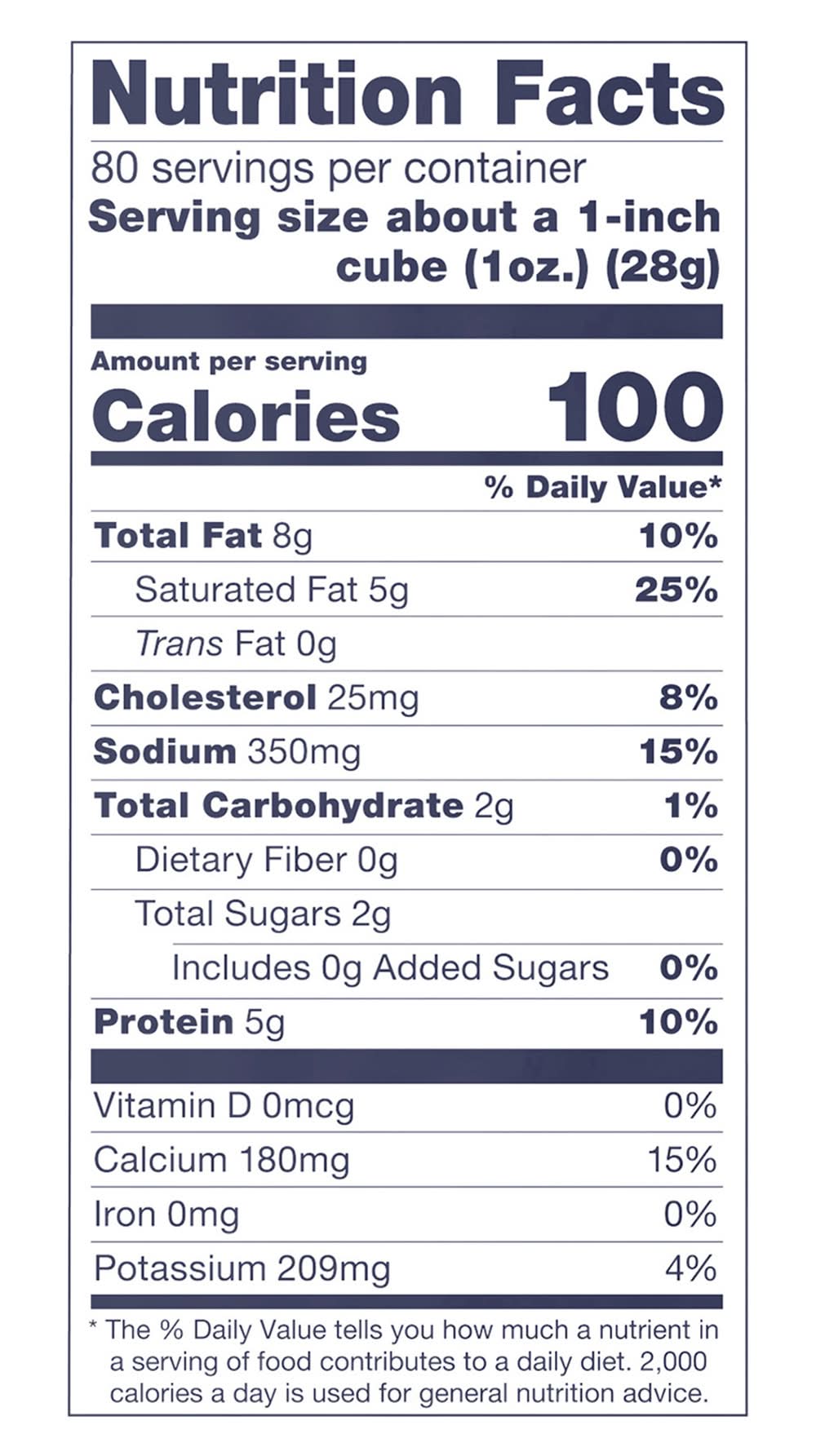 Ingredients: Cultured Pasteurized Milk and Skim Milk, Buttermilk, Milkfat, Salt, Contains Less than 2% of Sodium and Potassium Phosphates, Tricalcium Phosphate, Lactic Acid, Milk Protein Concentrate, Apo-Carotenal and Beta-Carotene (Colors), Enzymes Contains: Milk