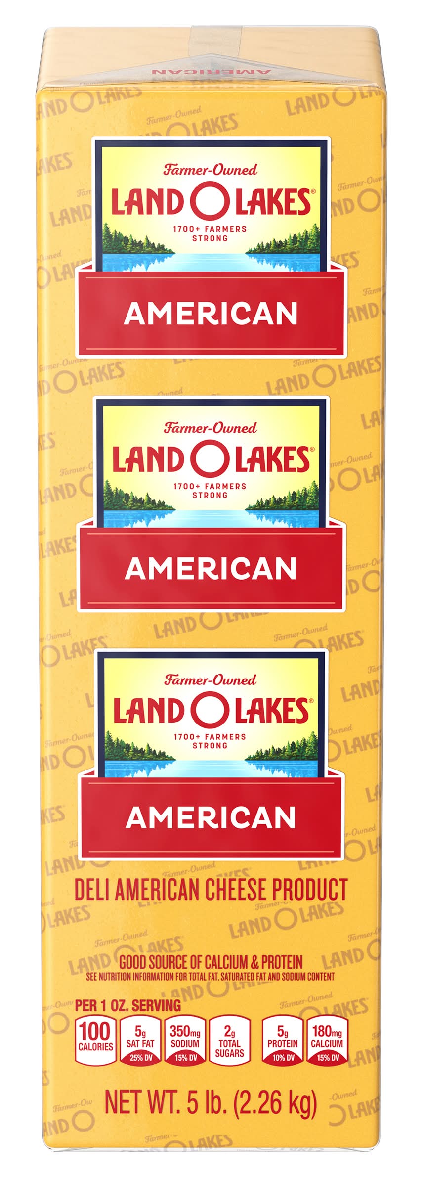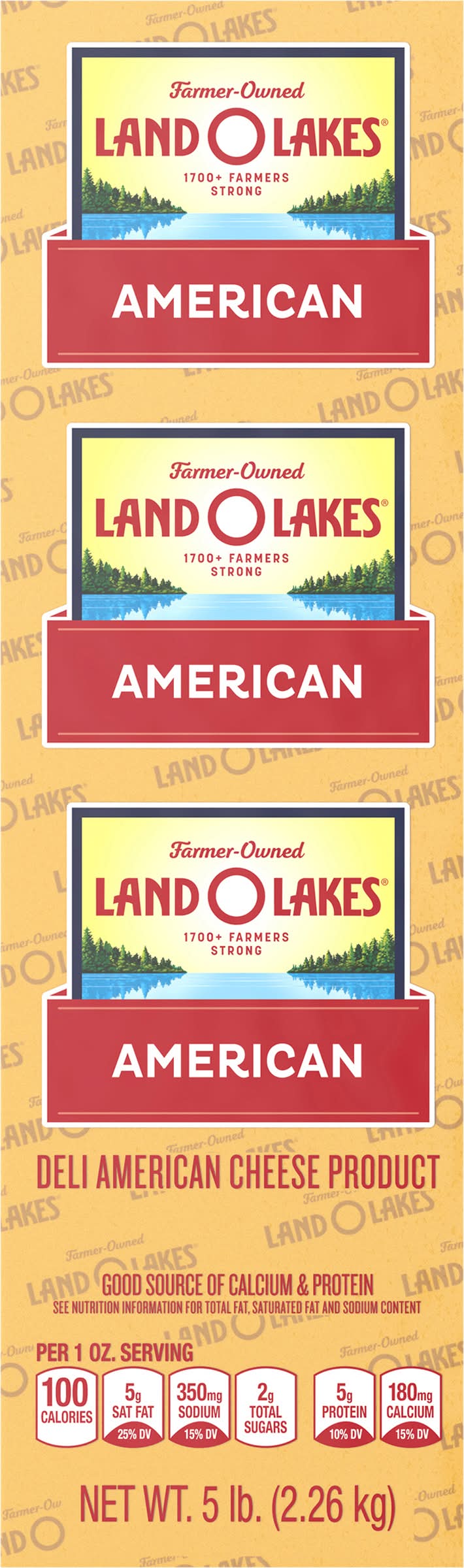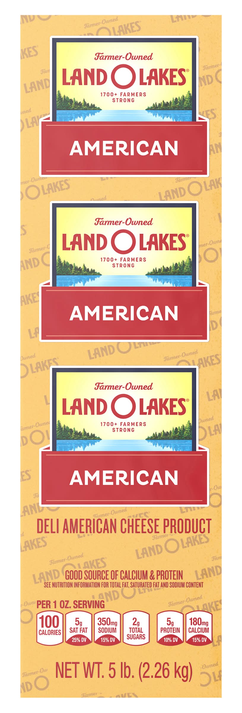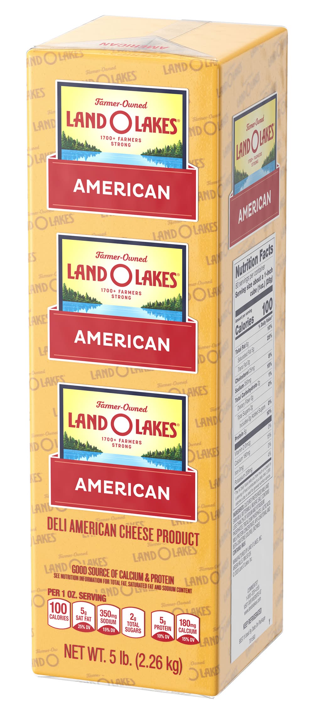 As a staple for sandwiches and burgers, Land O Lakes Yellow Deli American is the #1 branded choice in Deli American. Use it to upgrade your burger, grill a gooey grilled cheese, or make the perfect deli sandwich. • Number of servings: 80 • Land O'Lakes, Inc., Arden Hills, MN, 55126, Ph: 800-328-4155