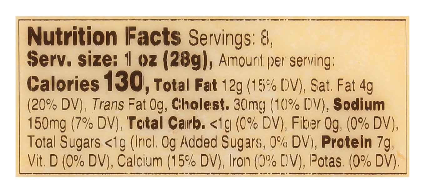 Ingredients: Cultured Pasteurized Milk, Salt, Enzymes, Natural Bourbon Flavoring, Annatto (Color) Contains: Milk