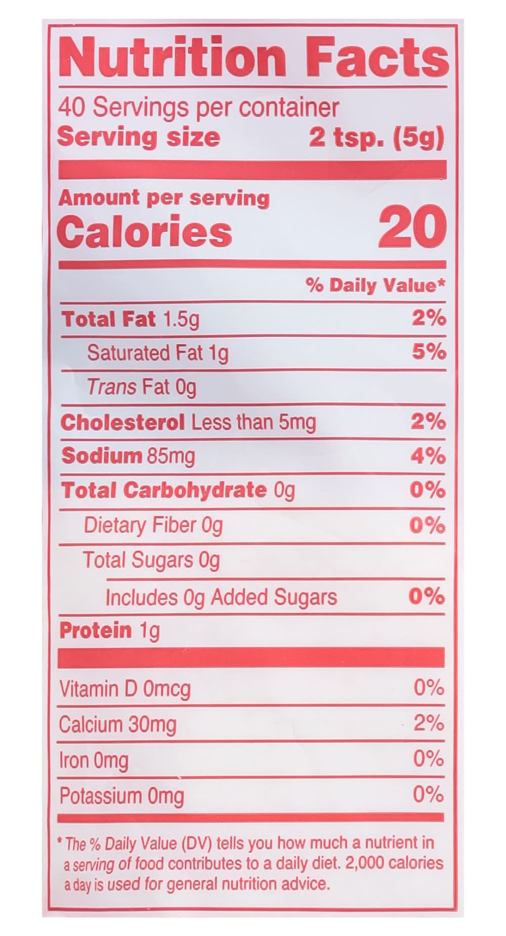 Grated Cheese, Natural, Sierra Brand Cotija Number of servings: 40