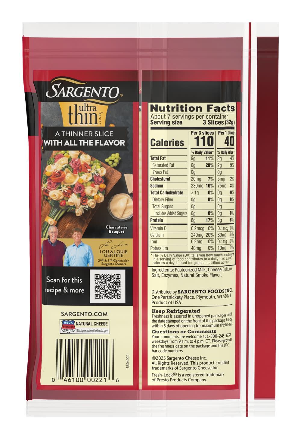 Sargento Ultra Thin Provolone Cheese Slices, Natural Smoke (7.6 oz, 20 ct)