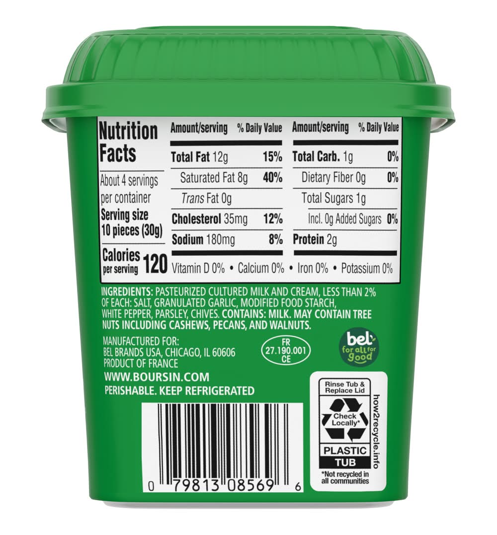 Elevate your everyday with bold and flavorful Boursin® Garlic & Fine Herbs Bites! A delicious blend of delicate garlic, fragrant parsley, and mild chives, these creamy, crumbly bites are perfect for turning any meal into a gourmet experience. • Number of servings: 4 • Packaging: Reusable