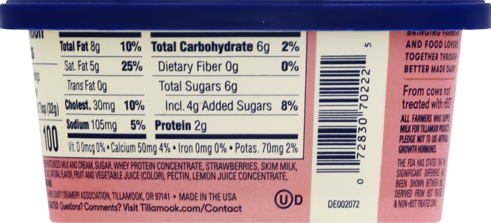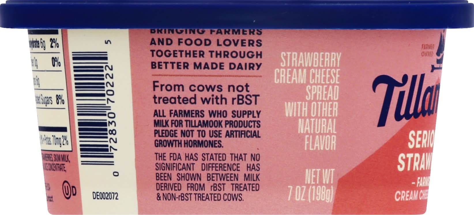 How cream cheese should taste. Bringing farmers and food lovers together through better made dairy. All farmers who supply milk for tillamook products pledge not to use artificial growth hormones. The FDA has stated that no significant difference has been shown between milk derived from rBST treated & non-rBST treated cows. Flavor: Strawberry