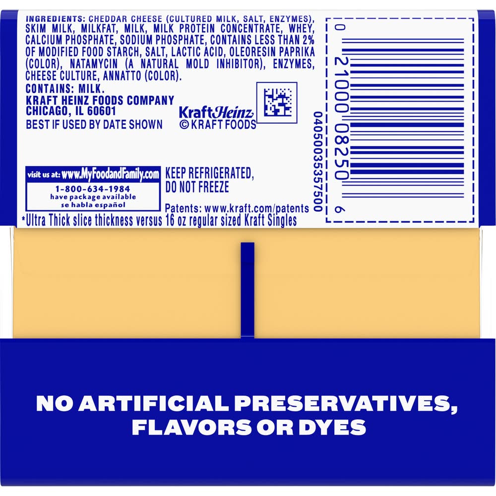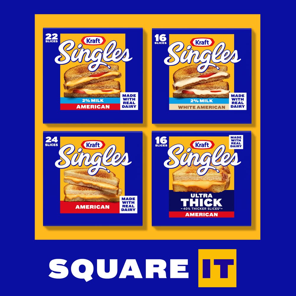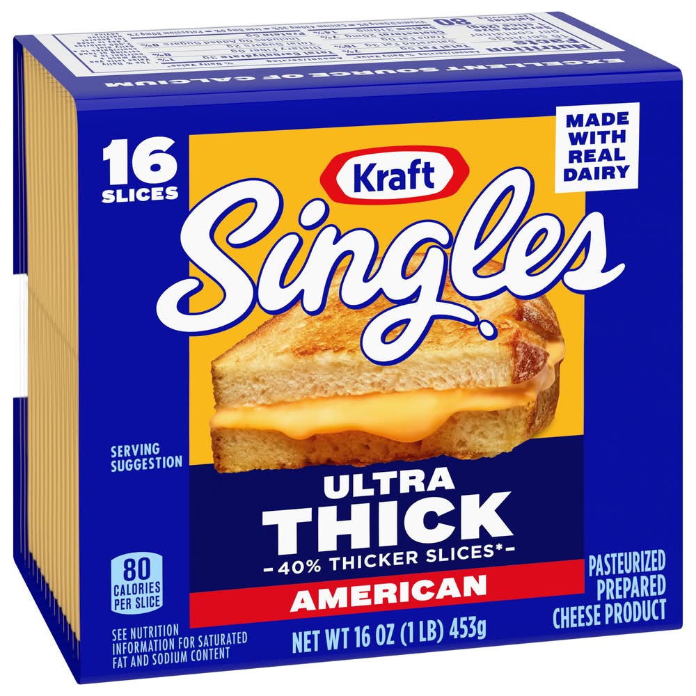 Delicious any way you square it, Kraft Singles Ultra Thick American Cheese Slices deliver the classic American taste and unmistakable melt that take your favorite foods to the next level. Made with real dairy and no artificial preservatives, flavors or dyes, our sliced cheese has a mild, savory flavor and smooth, creamy texture that’s perfectly melty. A single slice is all you need for the perfect grilled cheese. Try adding Kraft Singles to your breakfast sandwich, burger or tuna melt. Transform steak and bread into a Philly cheesesteak, put a twist on ramen or turn plain fries into ooey gooey cheese fries. When you’re craving classic comfort food, add America's favorite square to your mac and cheese for a simple joy that’s sure to make you smile. Each cheese slice comes individually wrapped for convenience, so you can stack and snack any time.