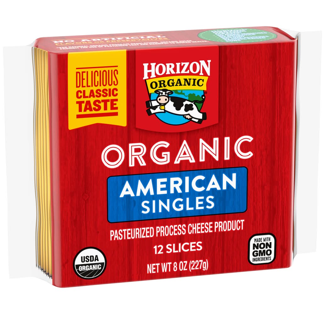 Bring the delicious flavor of organic cheese to your lunchtime favorites with Horizon Organic American Cheese Singles. Conveniently sliced and ready to use, these organic American cheese slices make a tasty addition to sandwiches, wraps, and more. And with their classic American taste, they’re perfect whether melted over a burger patty or paired with a cold cut. Each pack comes with twelve American cheese slices. Our USDA Certified Organic cheese is made with non-GMO ingredients, from cows that are given no antibiotics, no persistent pesticides, and no added hormones.*