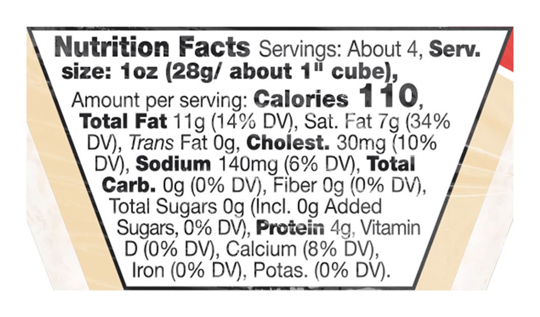 Ingredients: Pasteurized Cow Milk, Pasteurized Cream, Cheese Cultures, Salt, Enzymes Contains: Milk