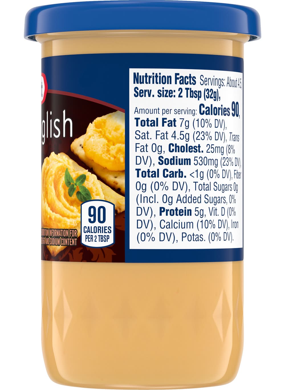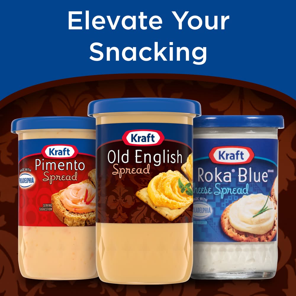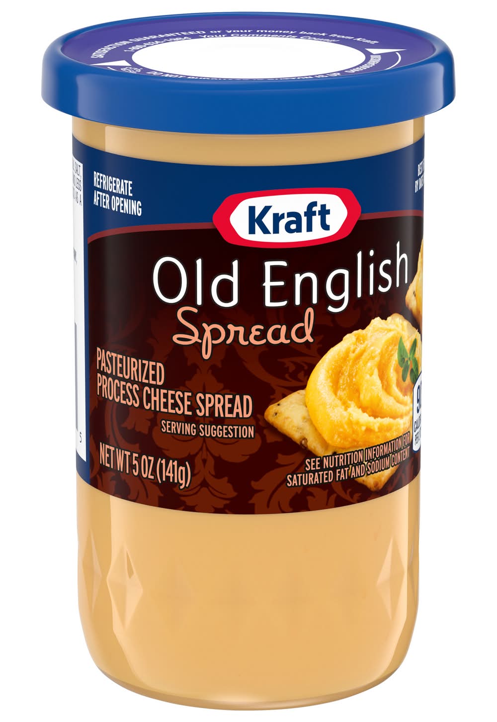 Elevate your snacking with pasteurized process cheese spread. Ideal as a condiment or dip, Kraft Old English Sharp Cheese Spread delivers a classic cheddar taste. Our flavorful and savory cheese spread has a creamy texture that’s perfect for spreading on crackers or toast. Try our delicious and versatile Old English cheese spread in your favorite dip recipe or add it to a burger, sandwich or salad. Old English Sharp Cheddar also adds unique flavor to macaroni and cheese. Kraft Old English Pasteurized Process Cheese Spread comes in a 5-ounce glass jar and contains about 4.5 servings. Kraft Heinz Foods Company, Chicago, IL, 60601.
