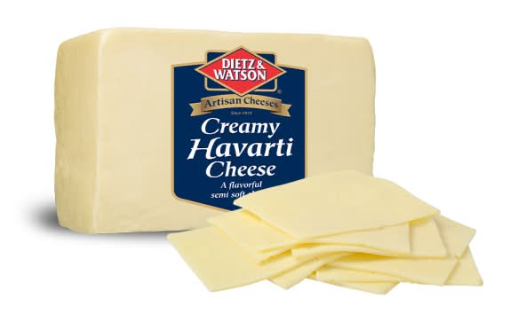 Dietz & Watson Creamy Havarti Cheese is crafted in small batches by master cheese makers using all-natural, premium ingredients. Its creamy texture makes it a versatile choice for enhancing sandwiches, snacks, or charcuterie boards.