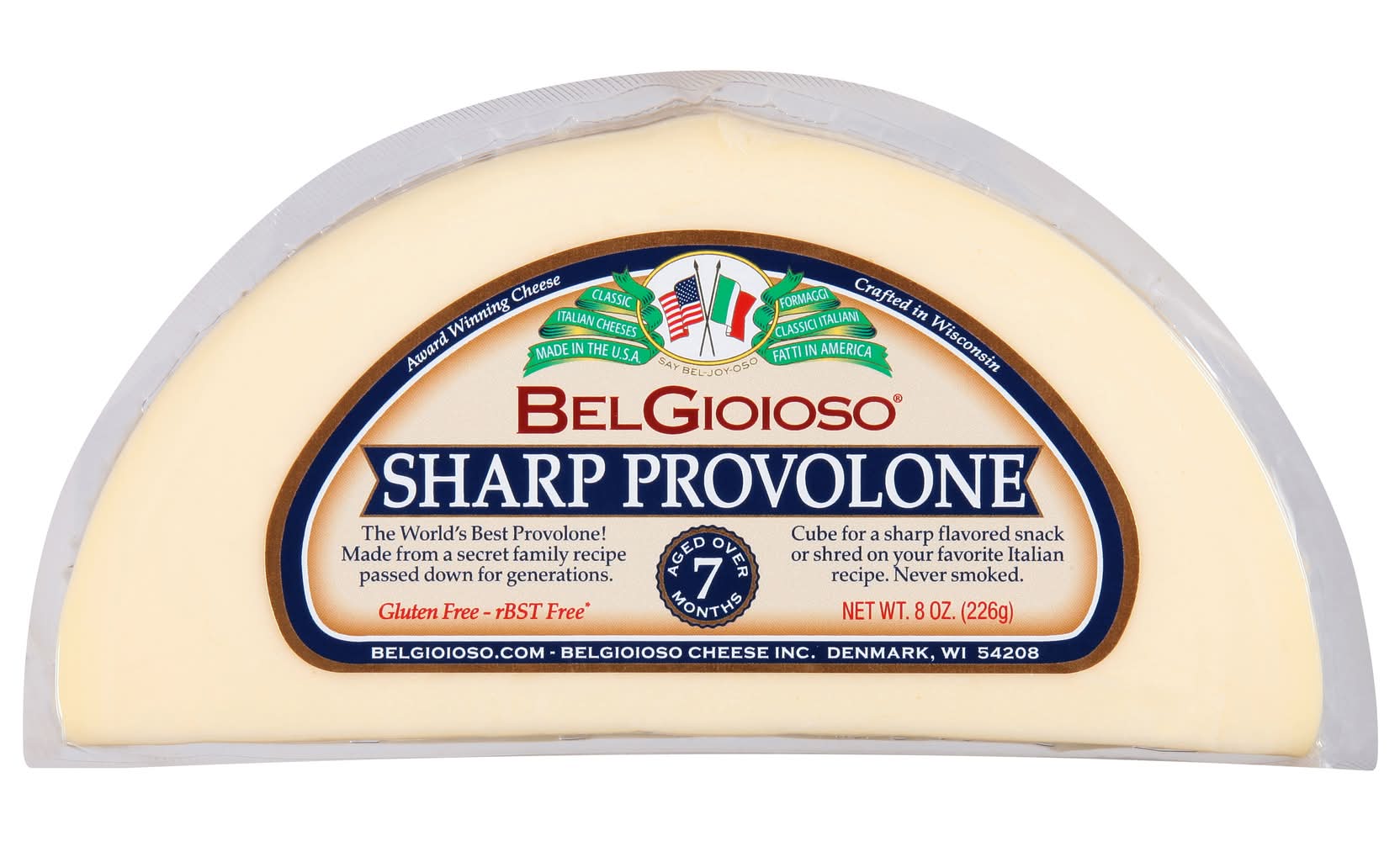 Cheese, Sharp Provolone Belgioioso Cheese Inc., Denmark, WI, 54208