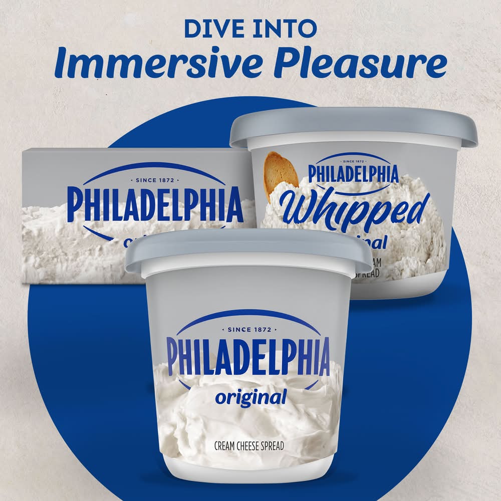 Dive into immersive pleasure with Philadelphia Original Cream Cheese Spread. Made with fresh milk and real cream for an extra creamy, multi-dimensional taste you can add to any meal. At Philly, we leave out the artificial preservatives, flavors and dyes to ensure a rich, quality flavor. Our original cream cheese spread is easy to spread, making it the perfect choice for adding to your morning bagel, crafting sushi rolls or preparing pinwheel sandwiches. Keep our resealable container of cream cheese spread refrigerated. With Philadelphia Cream Cheese Spread, enjoy a rich, creamy experience you don't just taste, you feel. • Kraft Heinz Foods Company, Chicago,IL,60601 • Packaging: Reusable