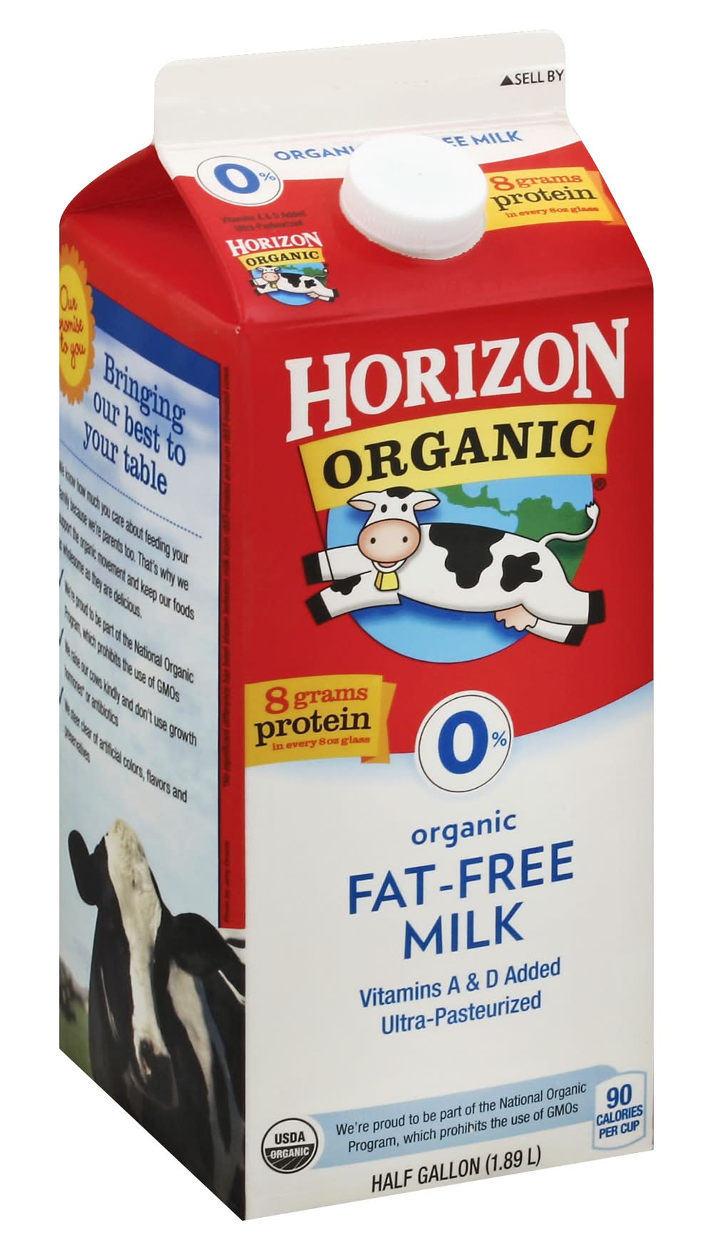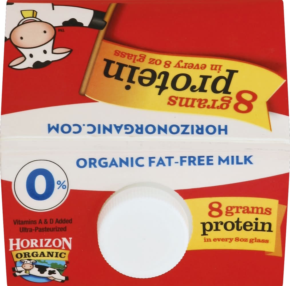 Get the joy of a cold glass of real milk with Horizon Organic High Vitamin D Nonfat Milk. With 0% milkfat and 25% of the recommended daily value of vitamin D in every delicious serving, this organic fat free milk makes it super easy to get essential nutrients into your day to help support strong bones. Always USDA Certified Organic, every Horizon milk carton comes from cows cared for by trusted farmers. Plus, it comes from cows that are fed non-GMO feed and not treated with antibiotics or growth hormones.* Every 1 cup serving of this ultra-pasteurized non fat milk has 8 grams of protein and provides nutrients including calcium and vitamin A. Its real organic milk that adults and kids can happily enjoy. At Horizon Organic, we believe that farming done the right way can drive healthier, more sustainable food communities for our world. Pioneering organic for the one horizon we all share. From our farmers to your family, Horizon Organic Milk is nourishing a happy, healthy future. *No significant difference has been shown between milk from rBST-treated & non rBST-treated cows. • Horizon Organic, Broomfield, CO 80021 • Packaging: Reusable