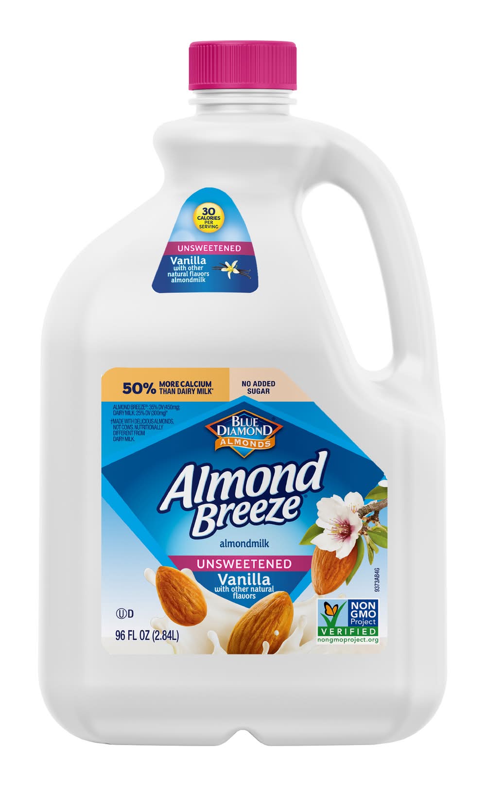 Almond Breeze non-dairy almondmilk is delicious in everything, from cereals and smoothies to cooking and baking. Browse our variety of refrigerated and shelf stable almondmilk, including sweetened and unsweetened, vanilla, chocolate, our coconut and banana almondmilk blends, as well as almondmilk creamers and almondmilk yogurts. • Flavor: Vanilla • Blue Diamond Growers, Sacramento, CA, 95812 • Packaging: Reusable