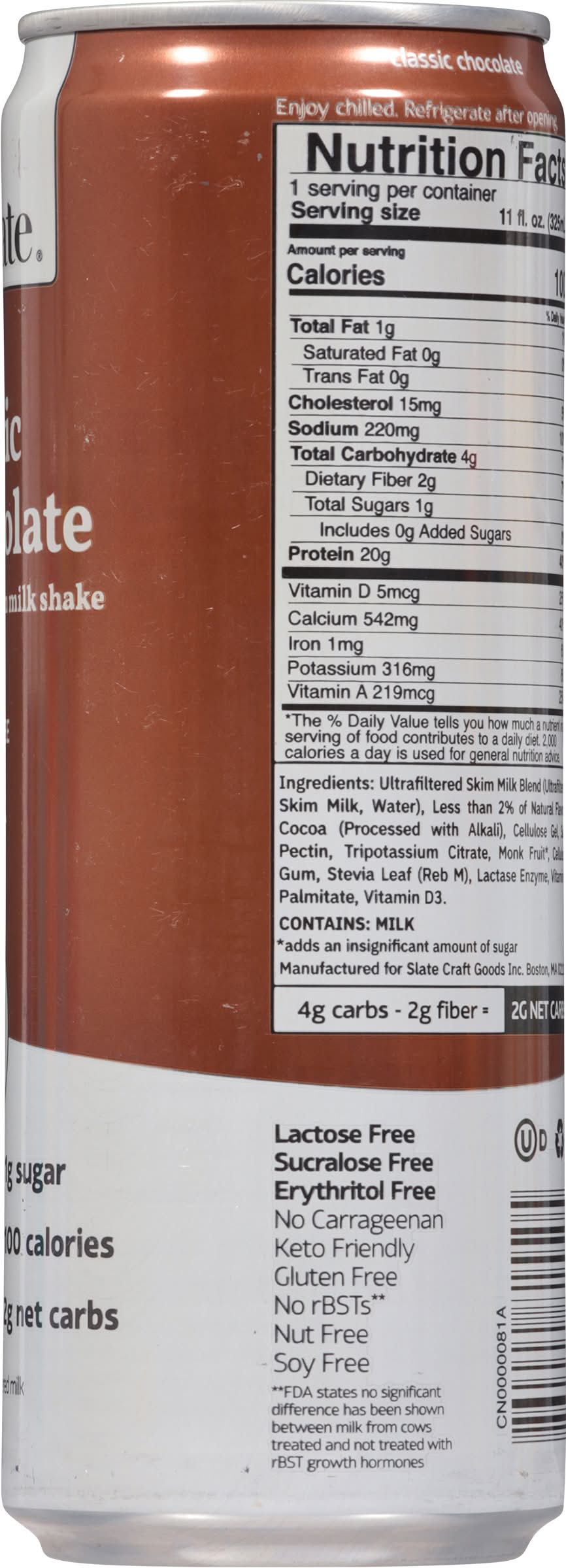 Slate High Protein Ultra-Filtered Milk Shake, Classic Chocolate (11 fl oz)