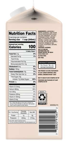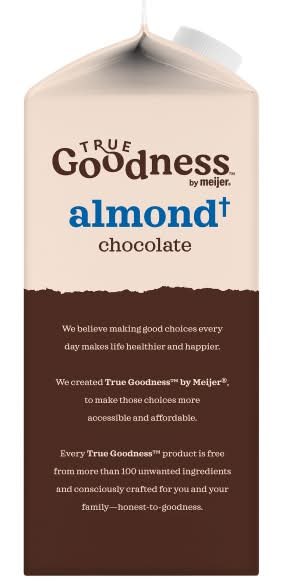 Who says the milk you enjoy has to come from a cow? True Goodness by Meijer Chocolate Almondmilk is full of the rich, creamy flavor you know and love with a distinct almond taste. It makes for an excellent dairy-free substitute in all your favorite recipes! • Flavor: Chocolate • Packaging: Reusable