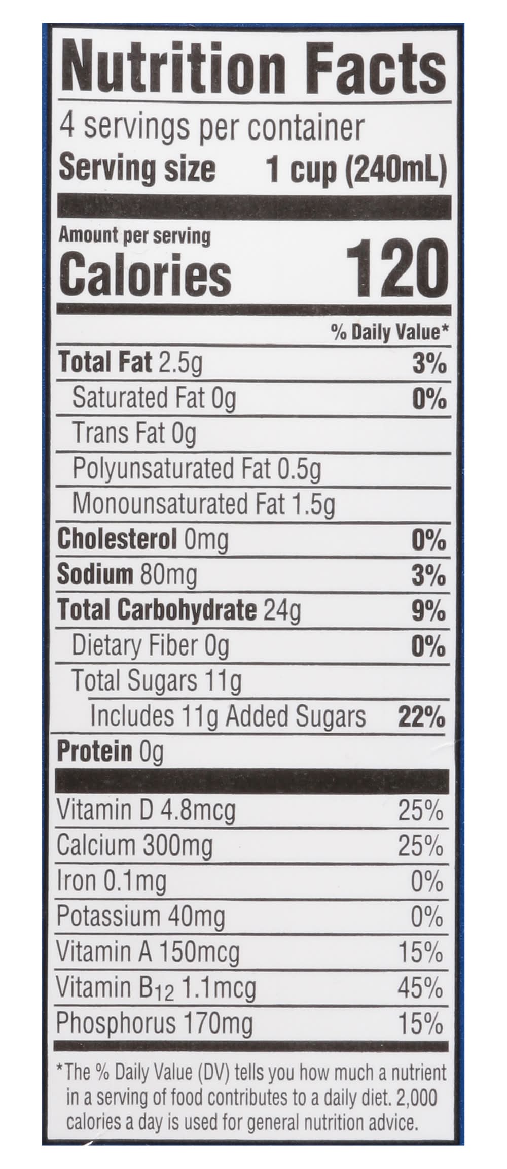 Ingredients: Organic Ricemilk (Water, Organic Hydrolyzed Rice), Organic Canola Oil and/or Organic Sunflower Oil, Tricalcium Phosphate, Sea Salt, Vitamin A Palmitate, Vitamin D2 (Ergocalciferol), Vitamin B12 (Cyanocobalamin)
