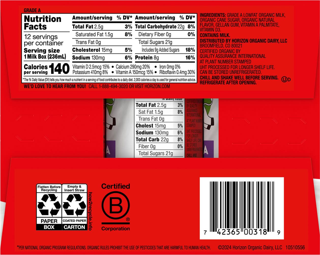 Milk, Vanilla, Lowfat, Organic • Flavor: Vanilla • Pack size: 12 • Number of servings: 12