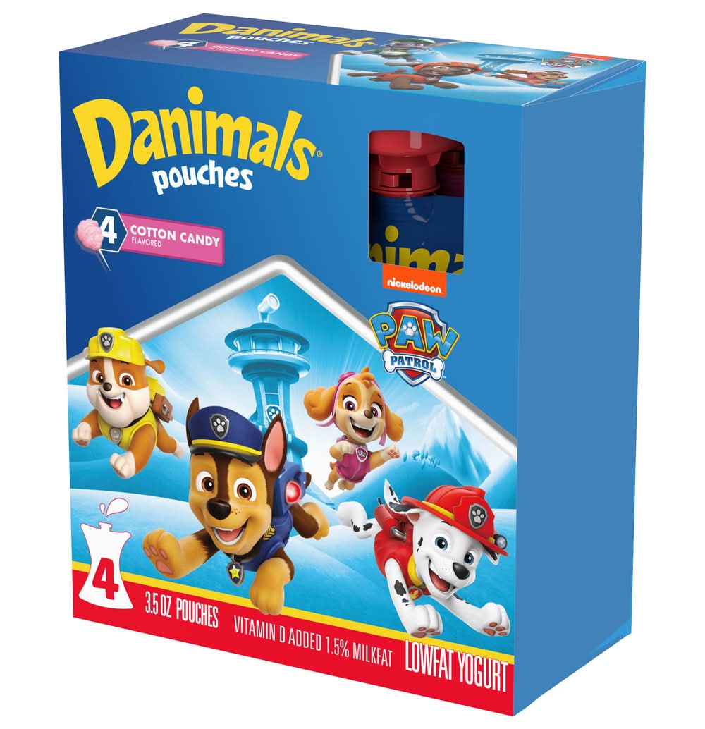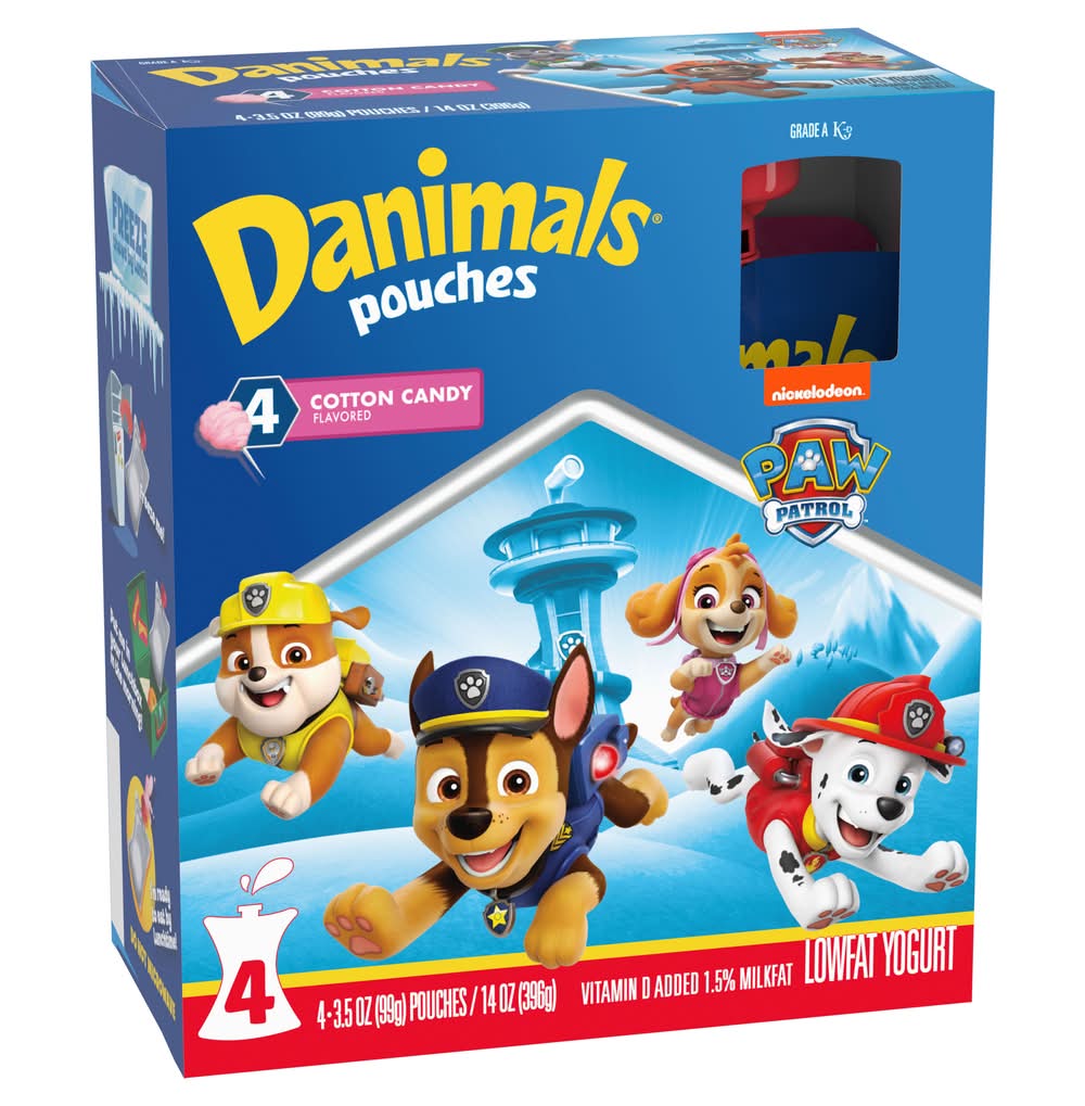 Danimals Paw Patrol Vitamin D Added 1.5% Milkfat Lowfat Yogurt Pouches, Cotton Candy (4 x 0.88 oz)