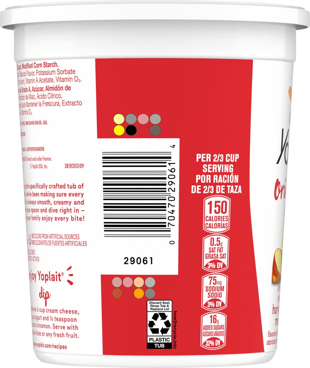 Low Fat Smooth Style Harvest Peach Yogurt • Flavor: Peach • Number of servings: 5 • Yoplait USA, Inc., Minneapolis, MN, 55440