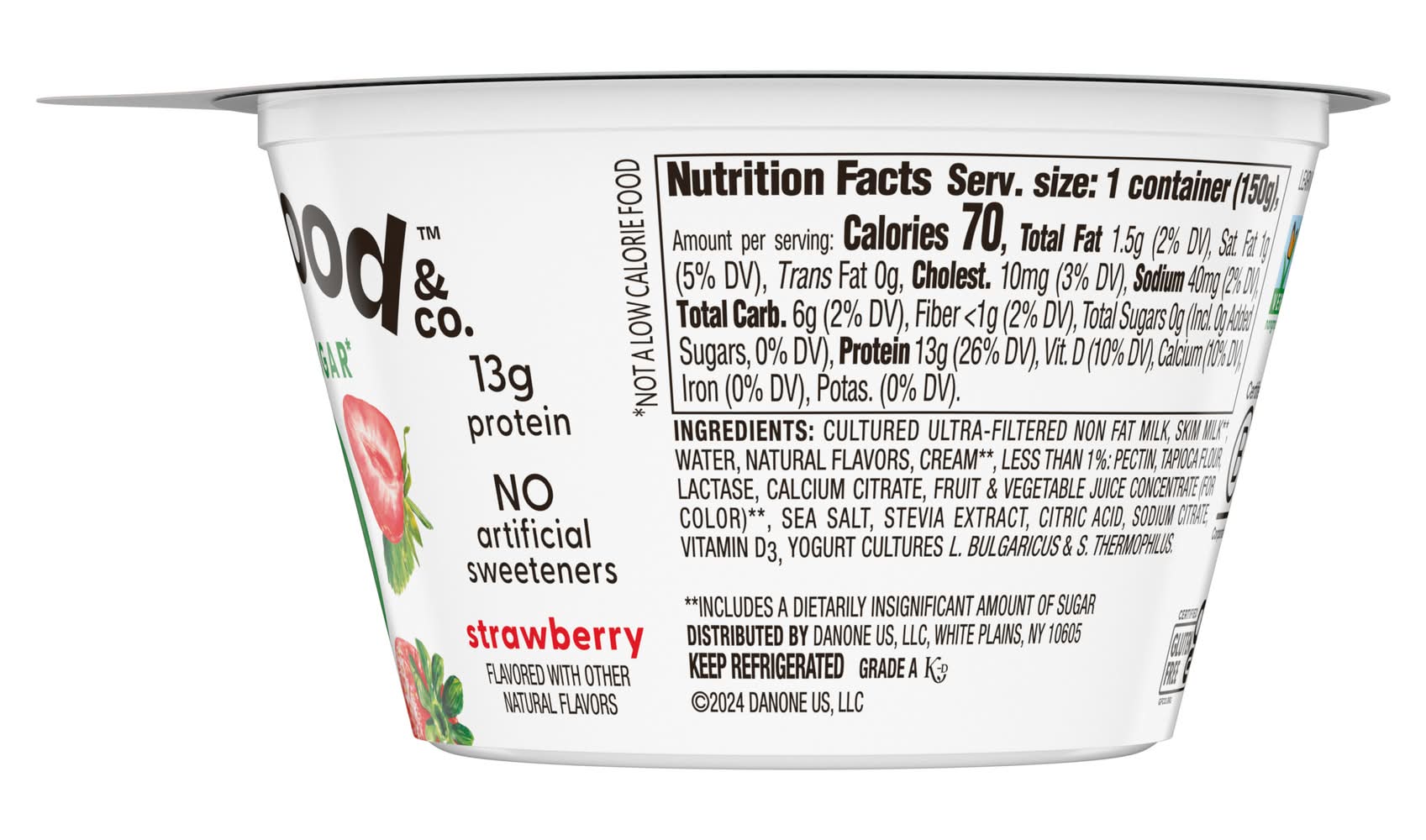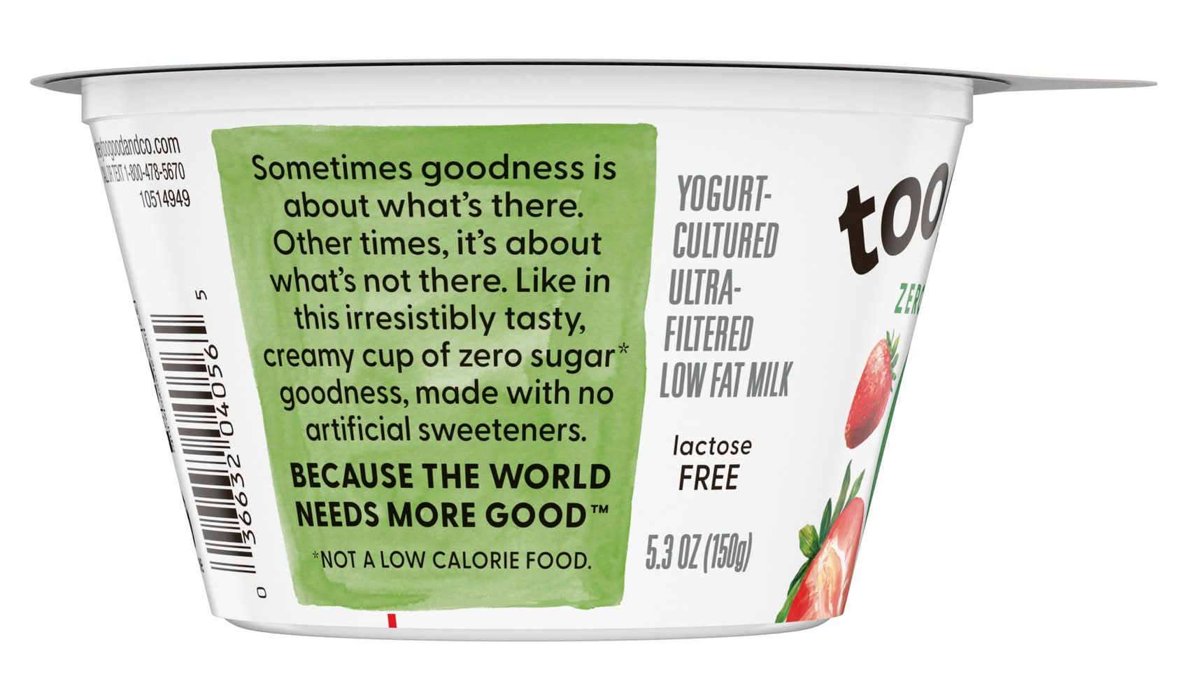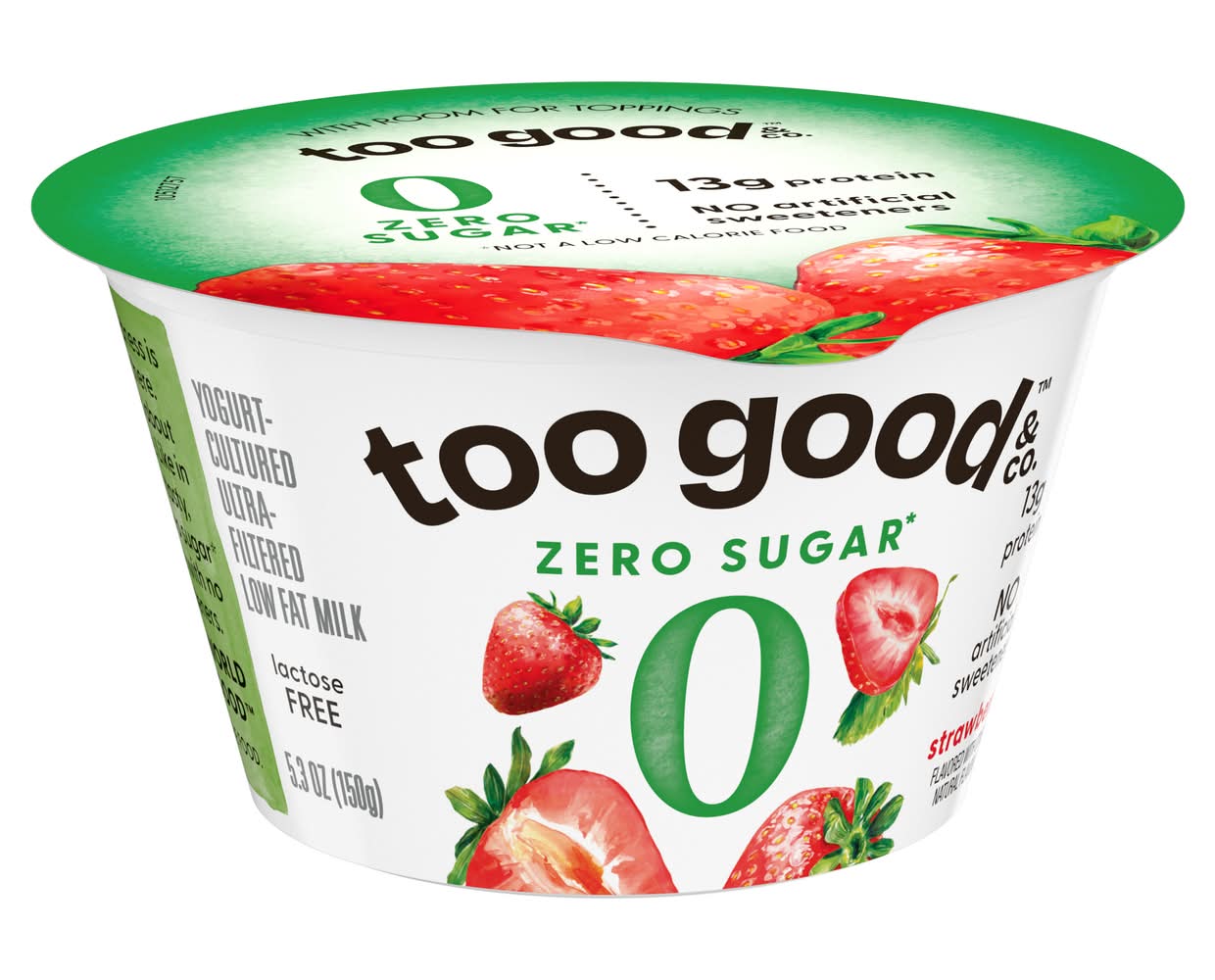 Doing good is about to become a whole lot more delicious with a Too Good & Co. Zero Sugar* Strawberry Yogurt-Cultured Ultra-Filtered Low Fat Milk Product. Too Good & Co. is raising the bar on goodness with Zero Sugar*, creamy taste and ingredients you feel good about. Every 5.3 oz serving of this zero sugar* yogurt-cultured dairy product is made with low fat ultra-filtered milk for deliciously creamy goodness in every spoonful with 70 calories, 0g of total sugar and 13g of protein per serving. Protein is an essential nutrient we need in our diets, and Too Good & Co. cups are great-tasting, convenient options for adding complete protein goodness every day. Plus, it has no lactose and no artificial sweeteners. Too Good & Co. Zero Sugar yogurt-cultured ultra filtered low fat milk makes a great addition to your breakfast and a delightful afternoon snack. Grab a pack for on the go snacks or pack a snack cup for a tasty pick-me-up whenever you need it.*Not a low calorie food. Flavor: Strawberry
