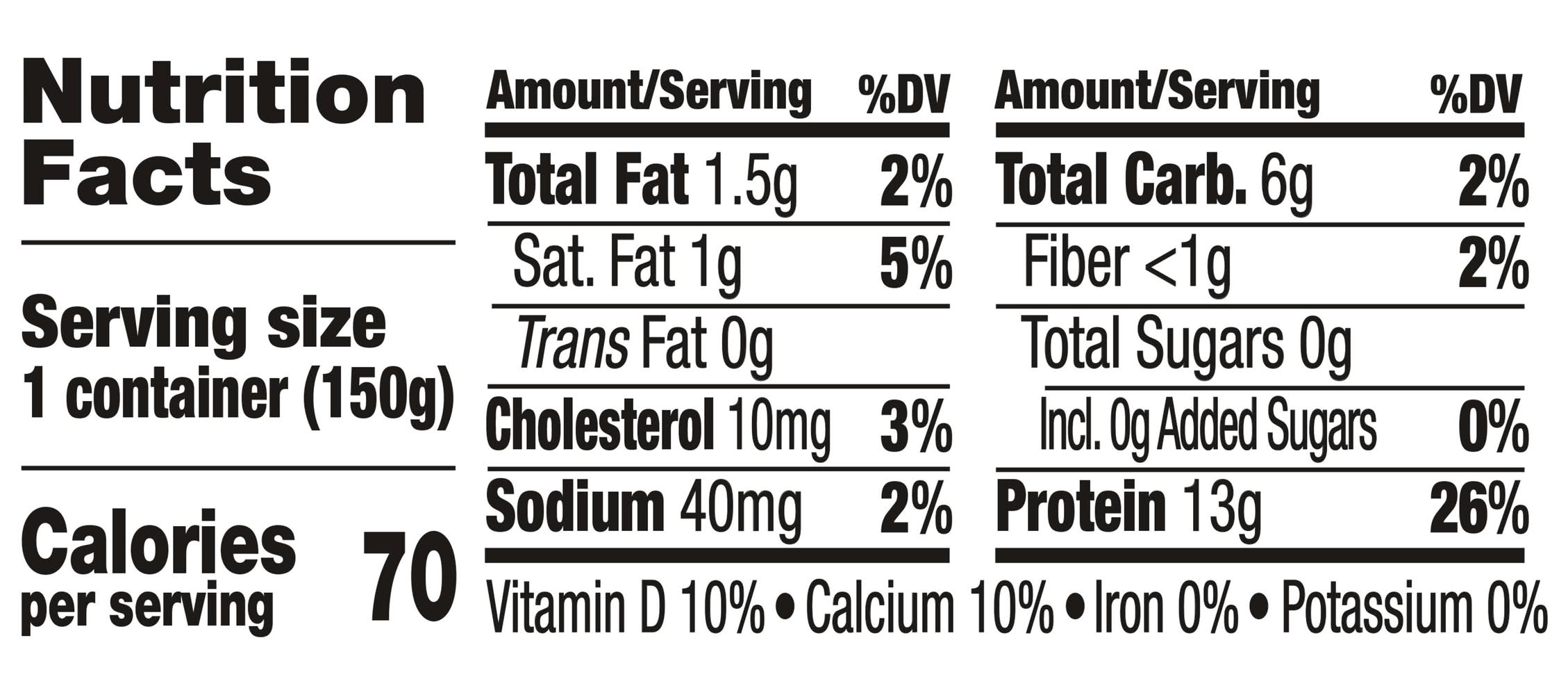 Ingredients: CULTURED ULTRA-FILTERED NON FAT MILK, SKIM MILK** WATER, NATURAL FLAVORS, CREAM**, LESS THAN 1%: PECTIN, TAPIOCA FLOUR, LACTASE, CALCIUM CITRATE, FRUIT VEGETABLE JUICE CONCENTRATE (FOR COLOR), **, SEA SALT, STEVIA EXTRACT, CITRIC ACID, SODIUM CITRATE, VITAMIN D3, YOGURT CULTURES L. BULGARICUS S. THERMOPHILUS. **INCLUDES A DIETARILY INSIGNIFICANT AMOUNT OF SUGAR. Contains: Contains Milk